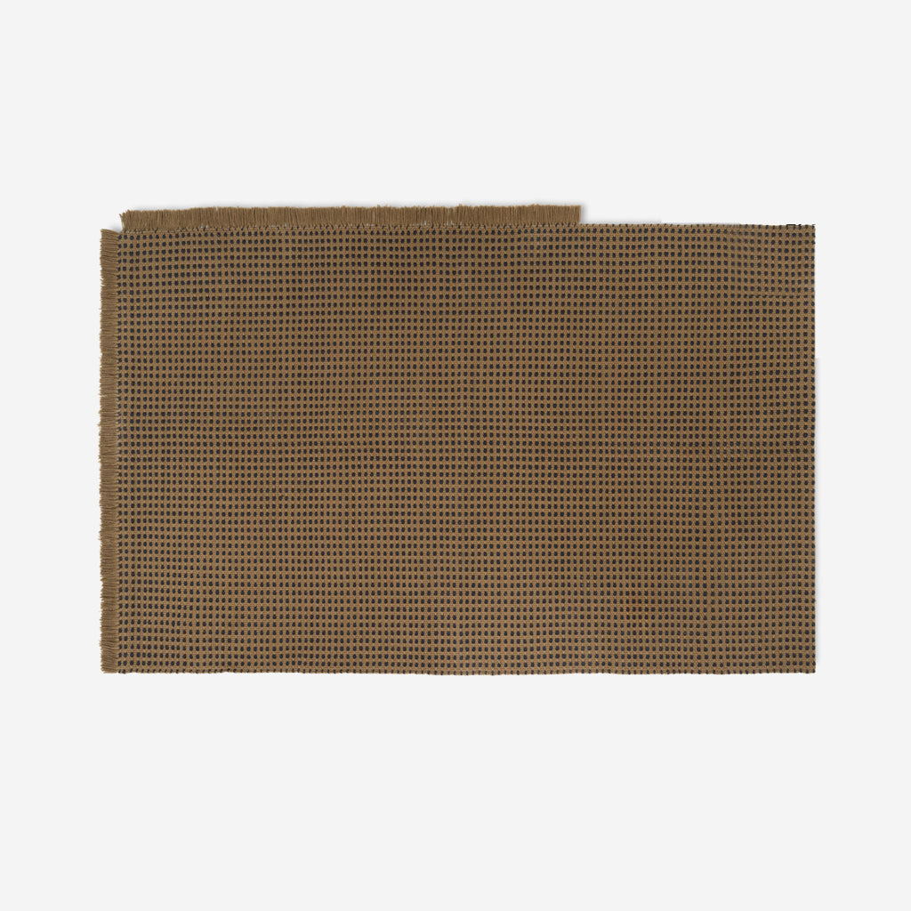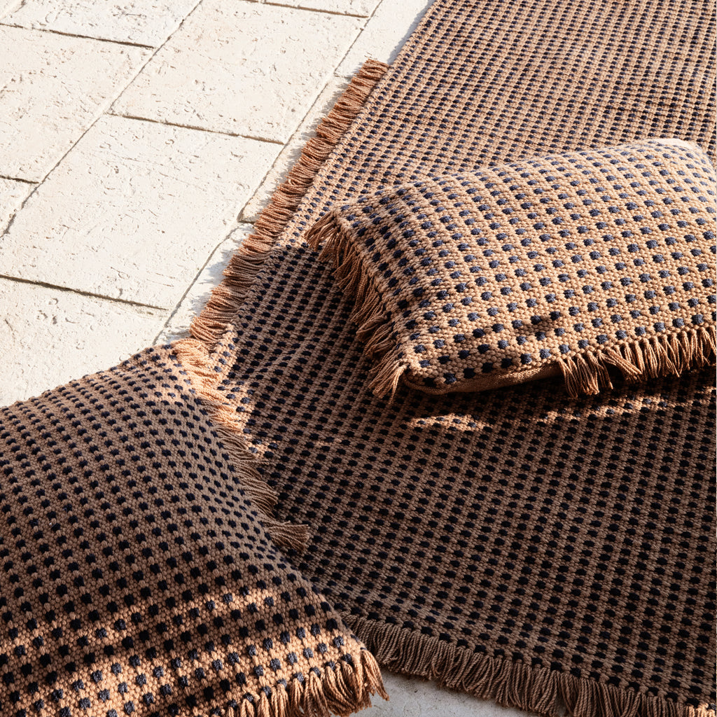 Our Way series of rugs, runners and cushion covers puts post-consumer plastic waste to good use: each sustainable design is made from recycled PET yarn woven into a two-tone design with a tactile, yet durable finish. With its timeless checkered pattern and asymmetrical fringes, the mat achieves a classic look with a twist.
