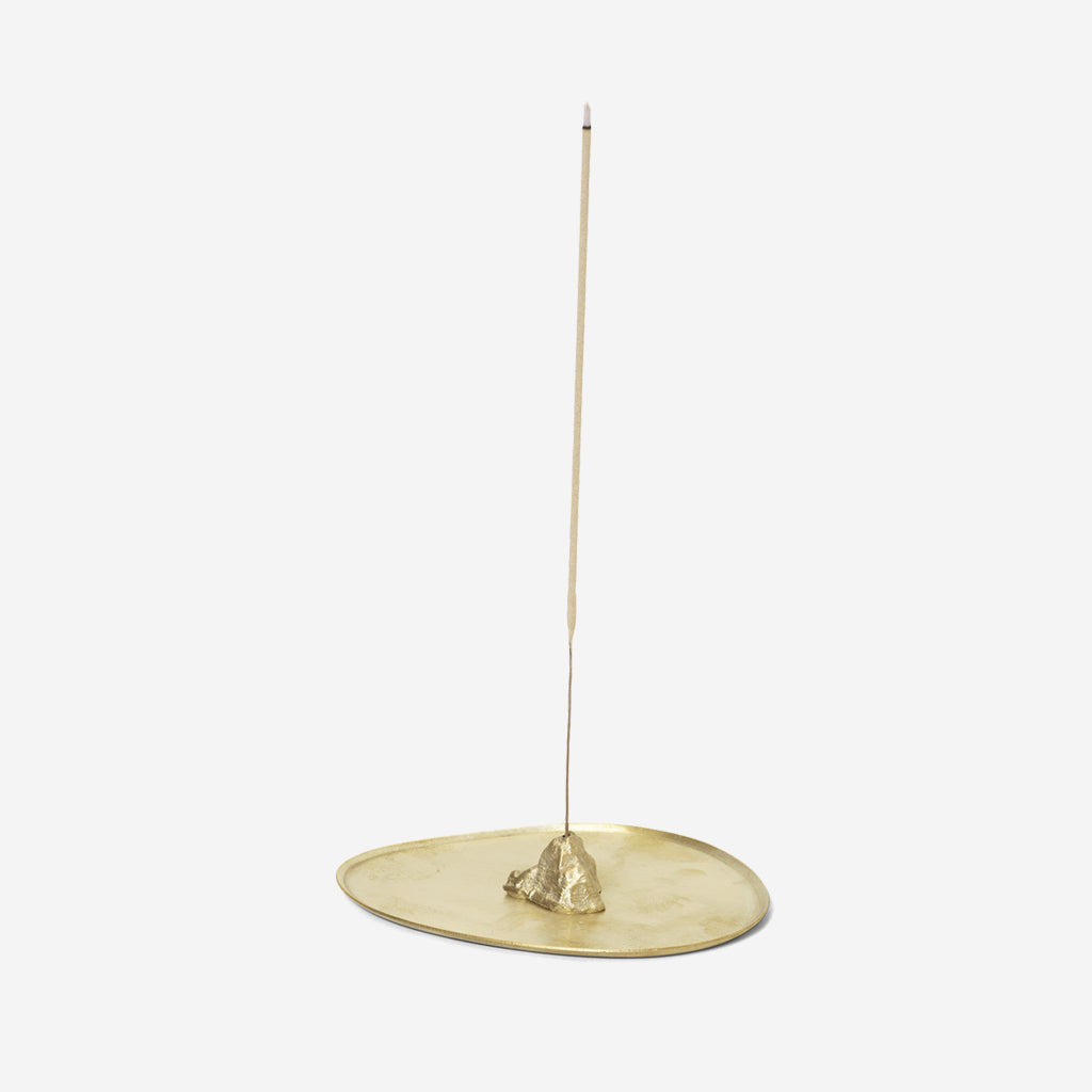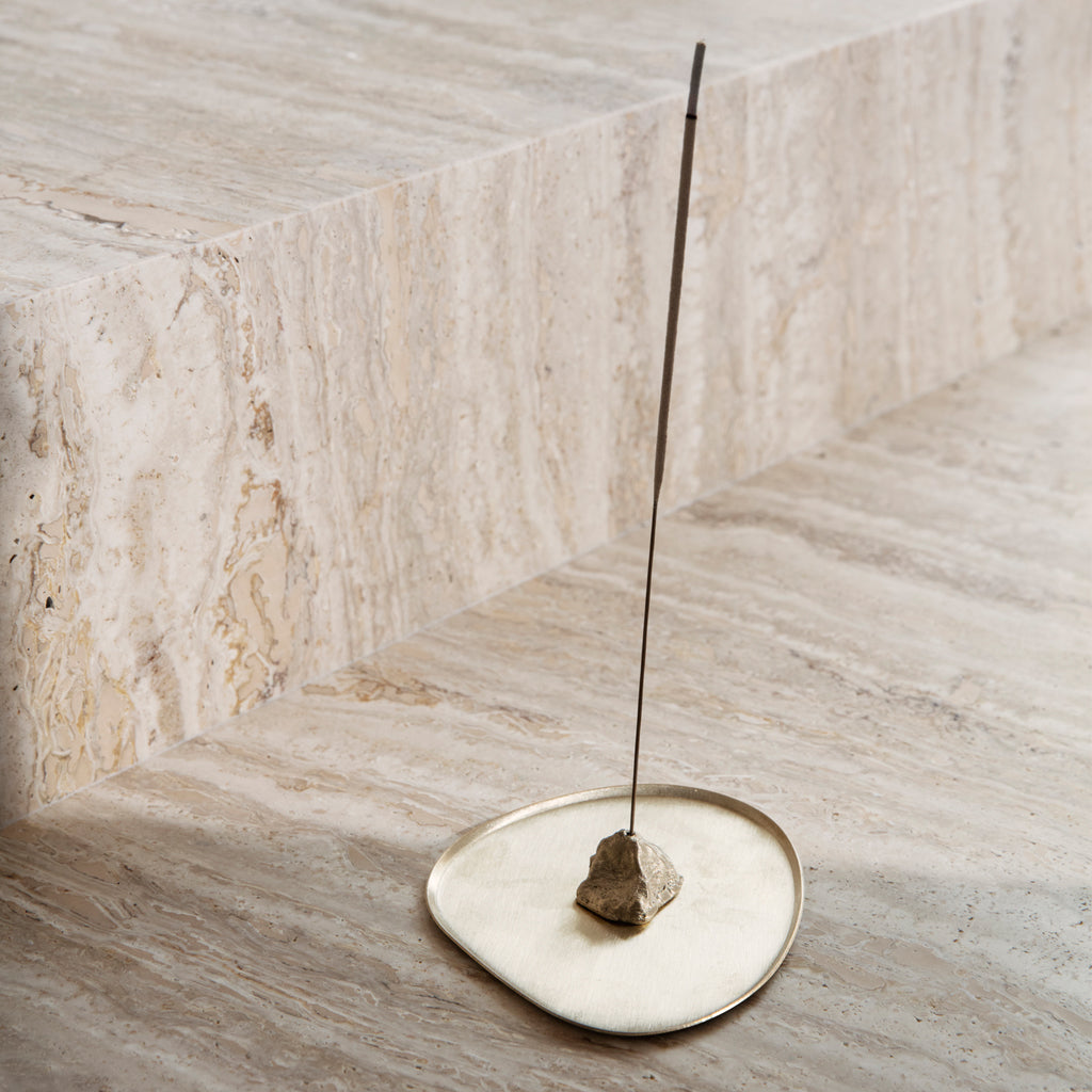 Scents drive memories and emotions, and they can be essential in setting the mood. To help you balance an atmosphere or creating a space of tranquillity in your everyday life, we have designed a simple incense burner. Made from natural brass, the holder of every incense stick is a cast stone, and they tray make sure to pick up the ashes from the incense sticks.