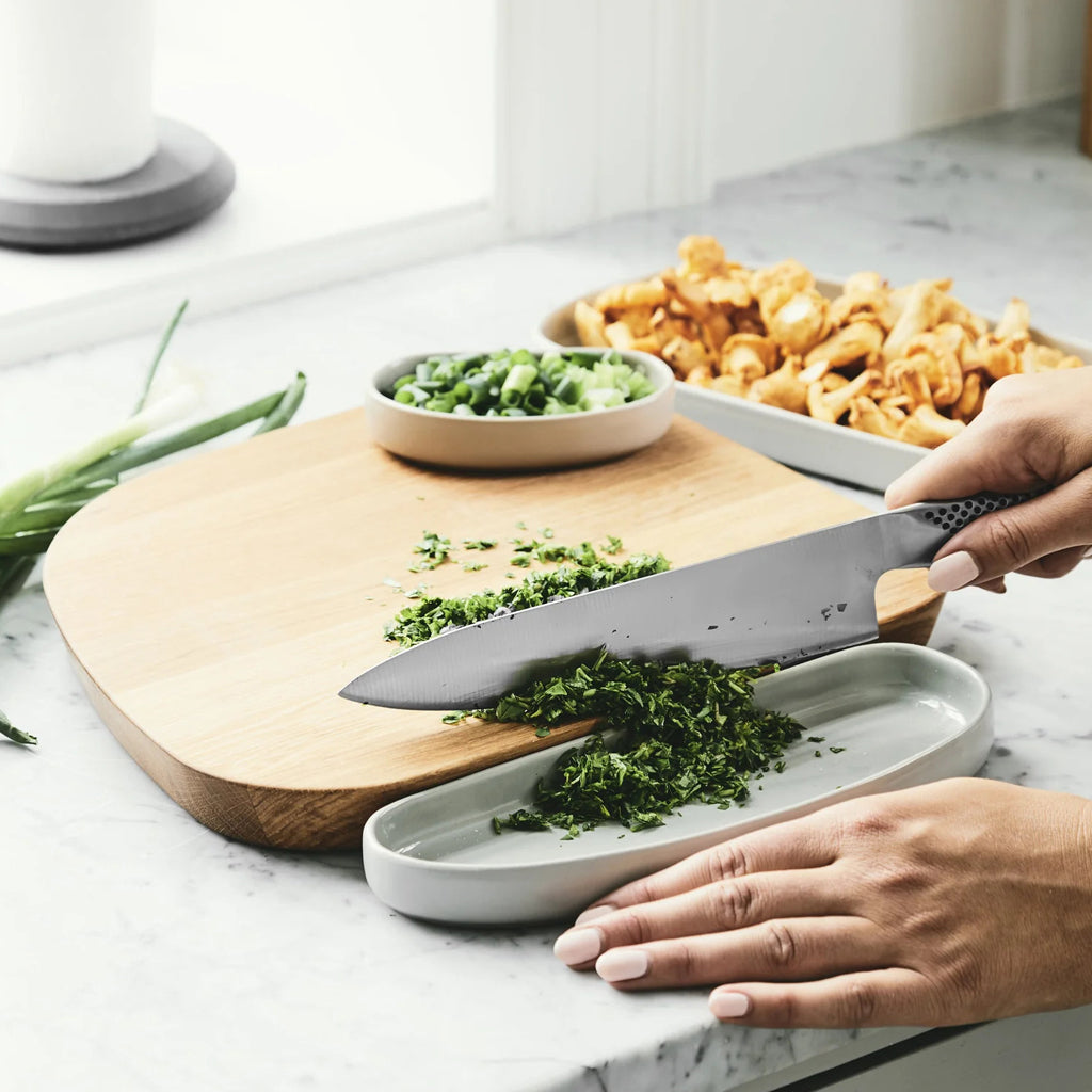 Galet collection is a set of three different sized ceramic dishes. The three ceramic dishes fit perfectly into each other making it pleasingly easy to slide the freshly cut herbs or grinded parmesan, into the bowl.