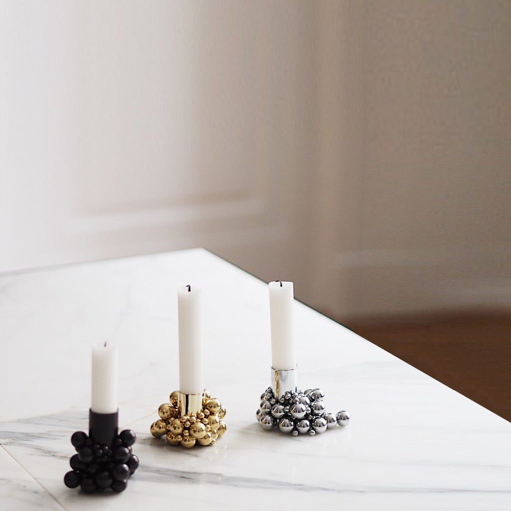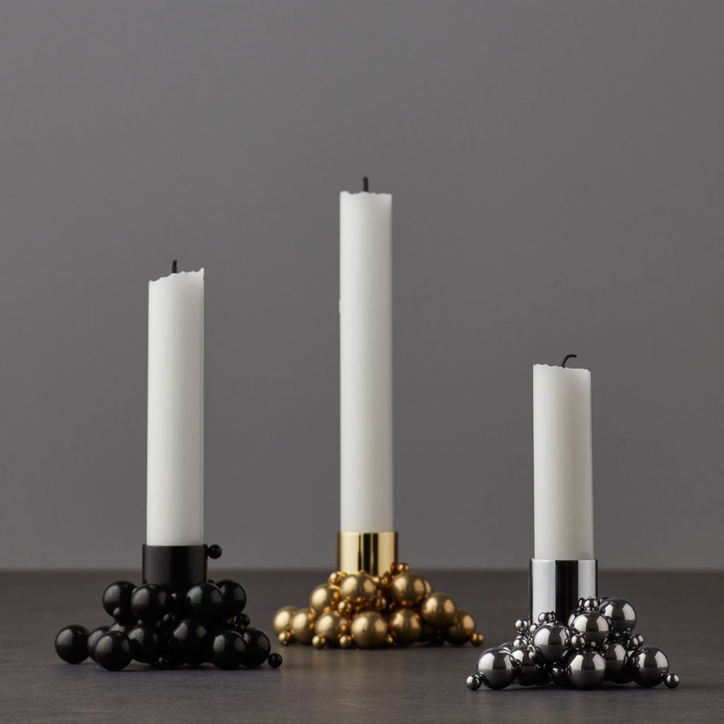 Consisting of a metal pipe, a magnetic and numerous steel balls, Molecule candlelight is a unique candleholder that plays with materials, magnetisme, shapes and individuality all at the same time. The final design of Molekyl is unfinished, with the ultimate shape decided by you.