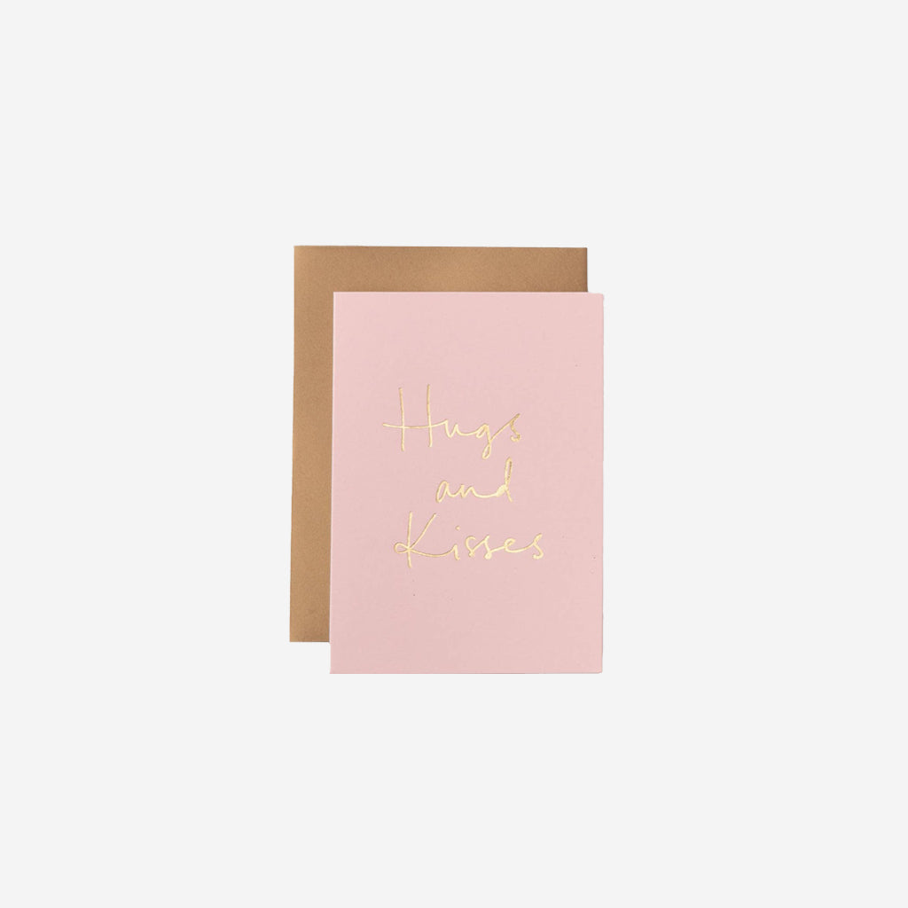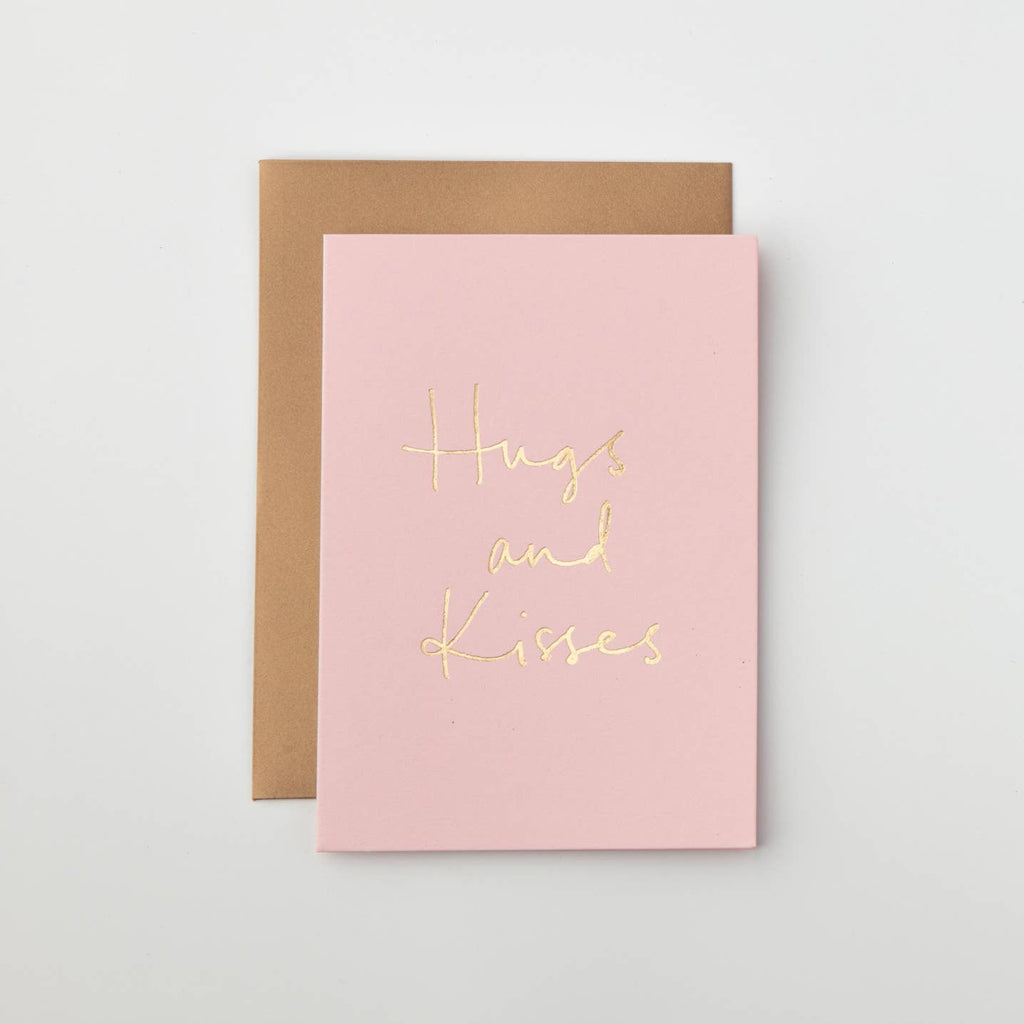 Luxury, gold foil Hugs and Kisses greeting card. Kind to the planet, heavy weight card stock with a blank interior. Matched with an antique gold envelope in a cello sleeve. Made in Australia
