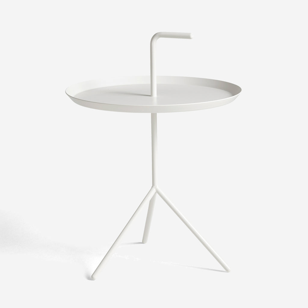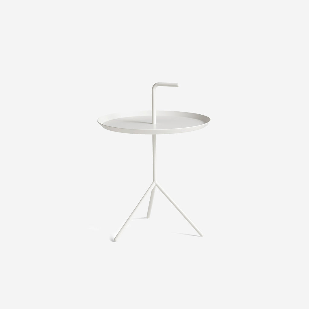 Thomas Bentzen’s portable side table is aptly named ‘Don’t Leave Me’. Abbreviated to DLM, it features a convenient handle that allows the metal table to be carried from room to room. Although it has a lightweight and portable structure, the three slanted legs provide great stability. Available in two sizes, the DLM and DLM XL make functional alternatives to traditional coffee tables. Suitable for inside use in most home or office environments.