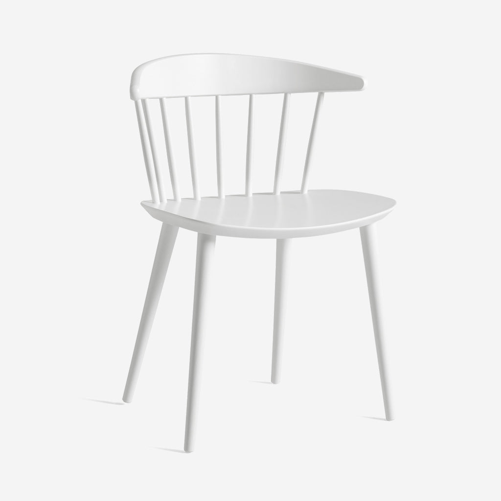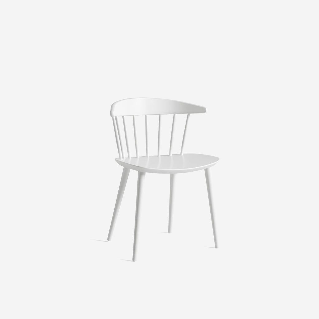With its wide back and seat combined with the light, vertical graphic expression, J104 resembles a cross between a dining chair and an easy chair. In this unique composition, although the broad seat takes up visual space, the spindle structure of the back lightens the overall impression and makes J104 a sculptural classic.