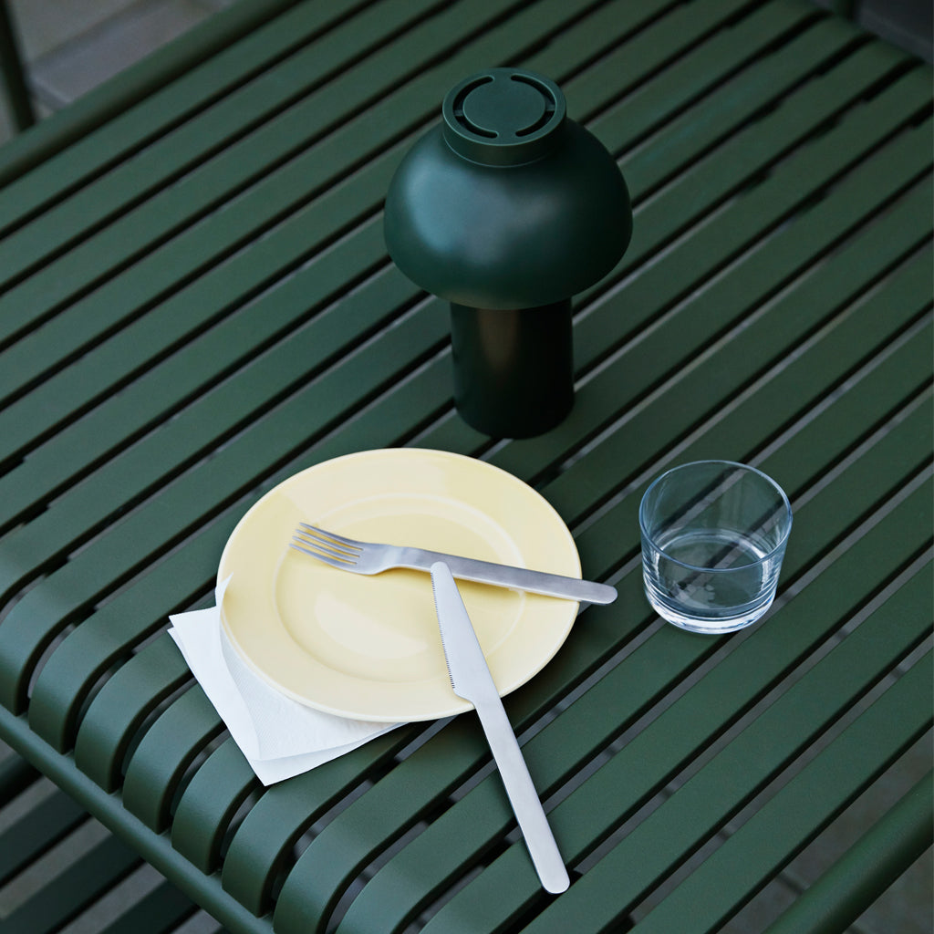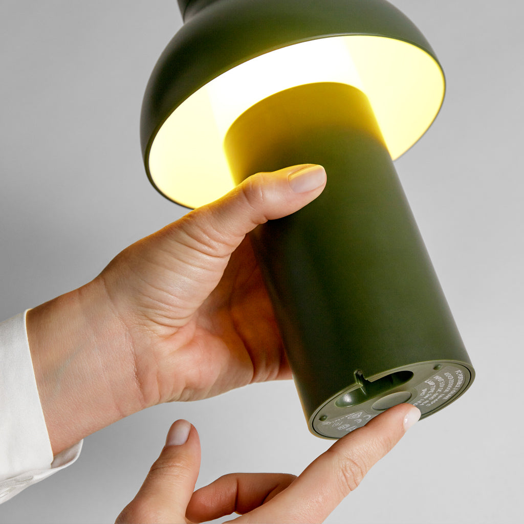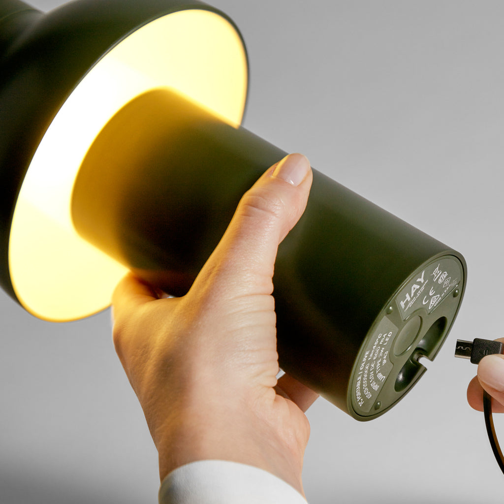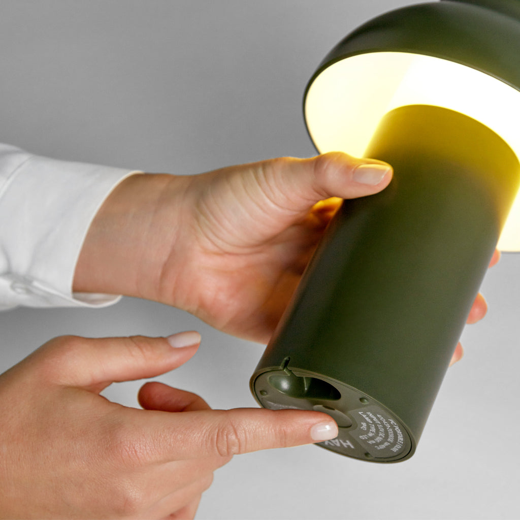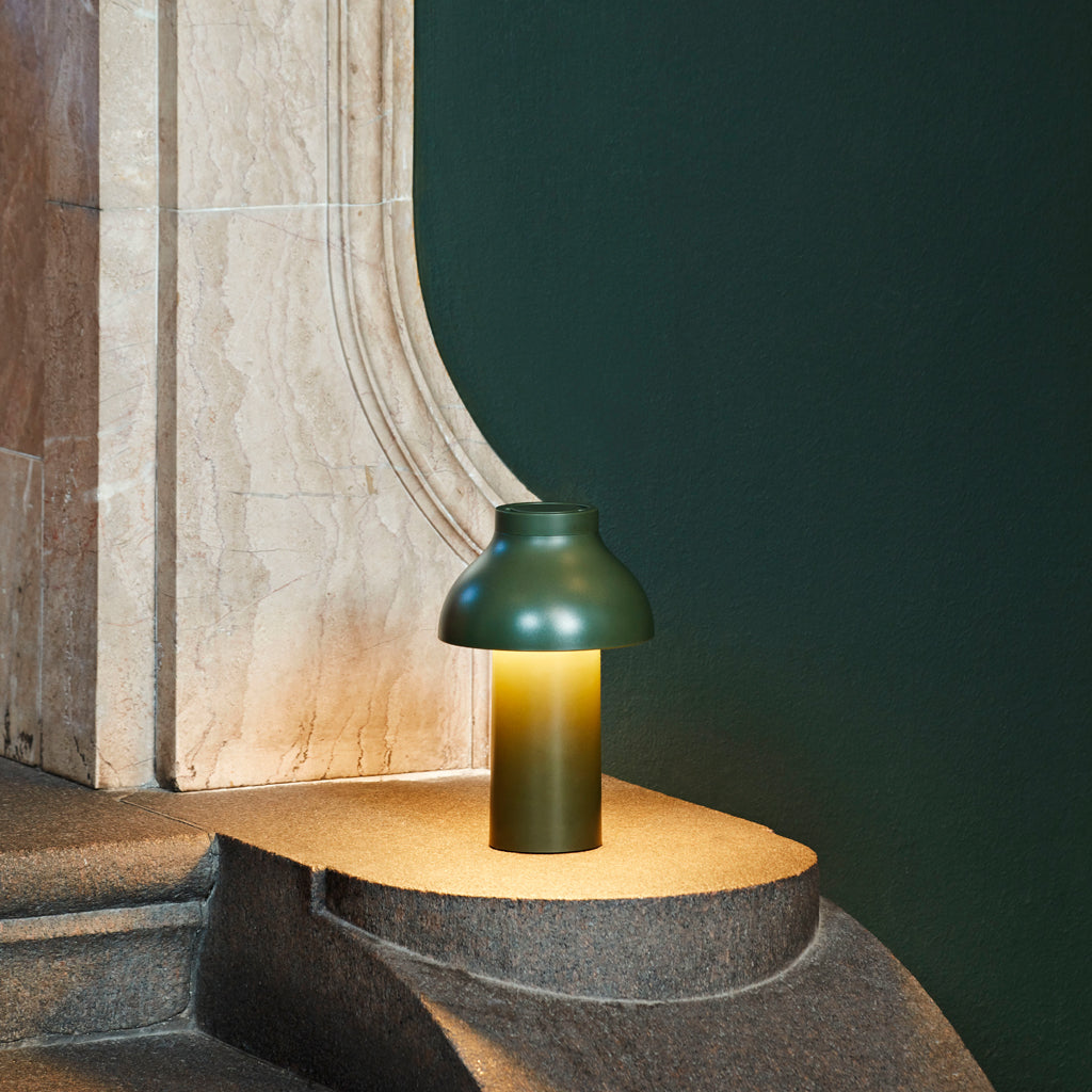 Pierre Charpin’s PC Portable Lamp is a refined and portable freestanding lamp for indoor and outdoor use. Constructed in robust plastic and featuring a matte scratch- and water- resistant finish, its battery-powered design gives the freedom and flexibility to move it anywhere. The light source is hidden from view by a polycarbonate diffuser, available with both a directional and ambient lamp shade, depending on the desired use. The PC Portable Lamps are available in several mono-colour designs or a selection of playful colour combinations, making them ideal for table lighting in numerous domestic environments, as well as at cafés, restaurants, and other public areas.