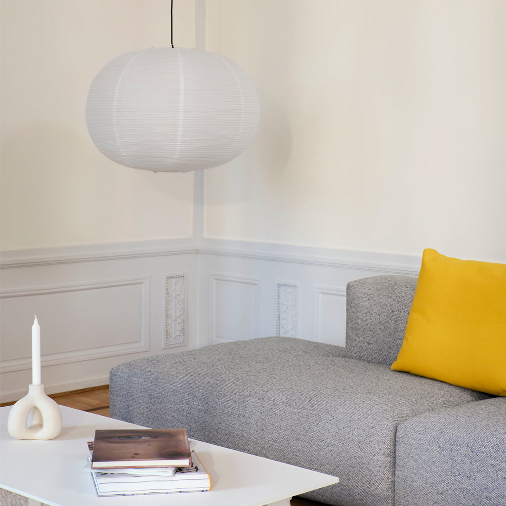 Featuring a classic lantern design in lightweight paper and ribbed bamboo frame, HAY's Rice Paper lampshade series emits a soft light and can be used anywhere in the home. Available in round, oval and oblong shapes, as well as a floor variant with wire legs for standing. Is not supplied with a cord set, HAY Table Cord Set is recommended.