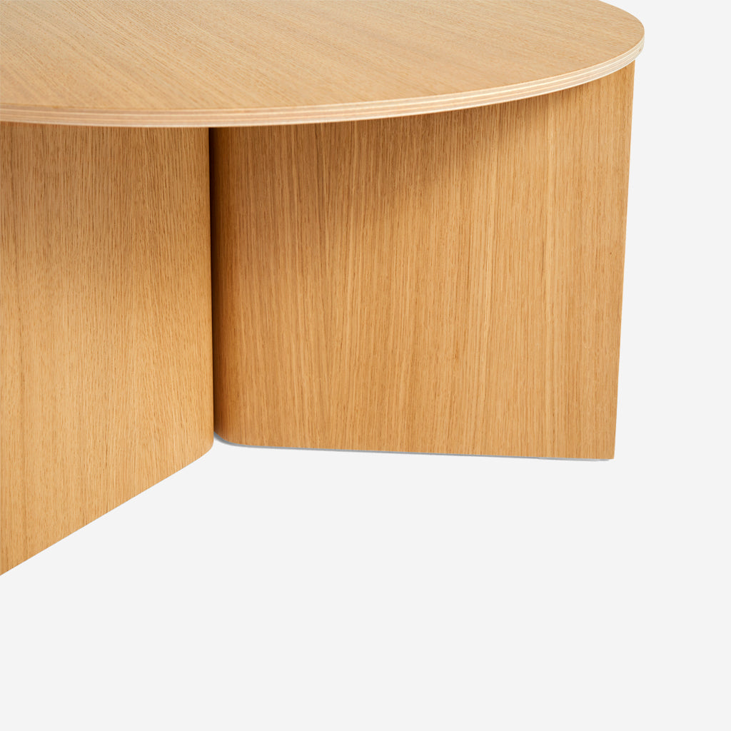 HAY’s Slit Table is a geometric wooden table inspired by paper origami techniques. The slim frame appears folded beneath the tabletop, creating a simple yet sculptural form that is reminiscent of traditional Japanese paper art. The Slit Table is available in different shapes and sizes, and is offered in various wood types and finishes. Compact and versatile, it can be used on its own or arranged in clusters in diverse private or public settings.