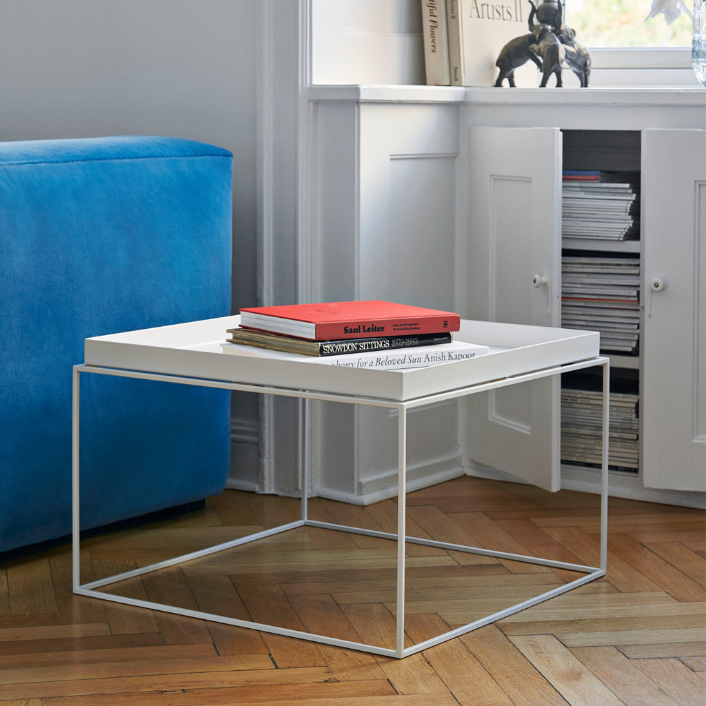 The metal Tray Table is a multi-functional piece of furniture that can easily be adapted to fit your needs. When the tray top is in place, it can be used as a bedside table or coffee table, and when the tray top is removed, it becomes a regular tray that can be used to carry items.