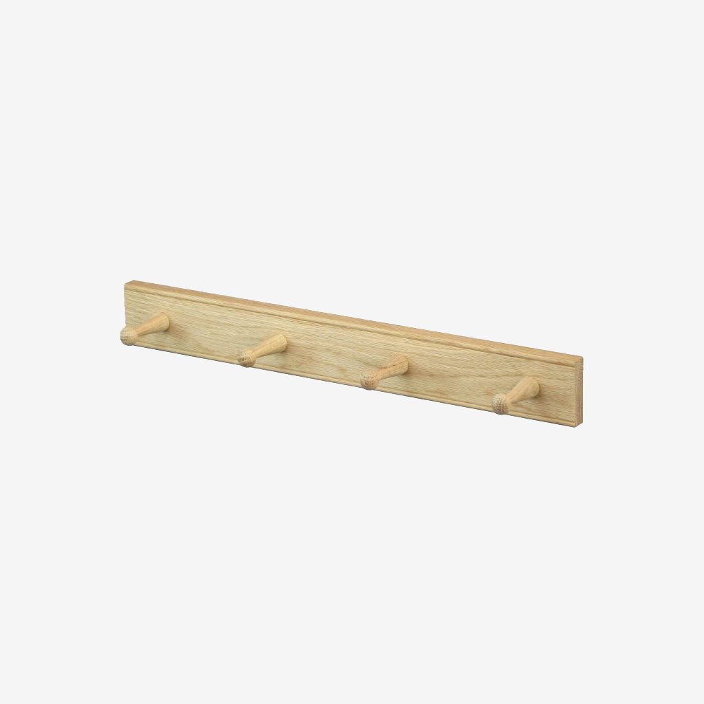 Simple & unobtrusive in design, Creamore Mill's shaker style coat hook rail is perfect for hats and coats. The oak rail is wall mounted and comes with 4 pegs with a beaded detail top.