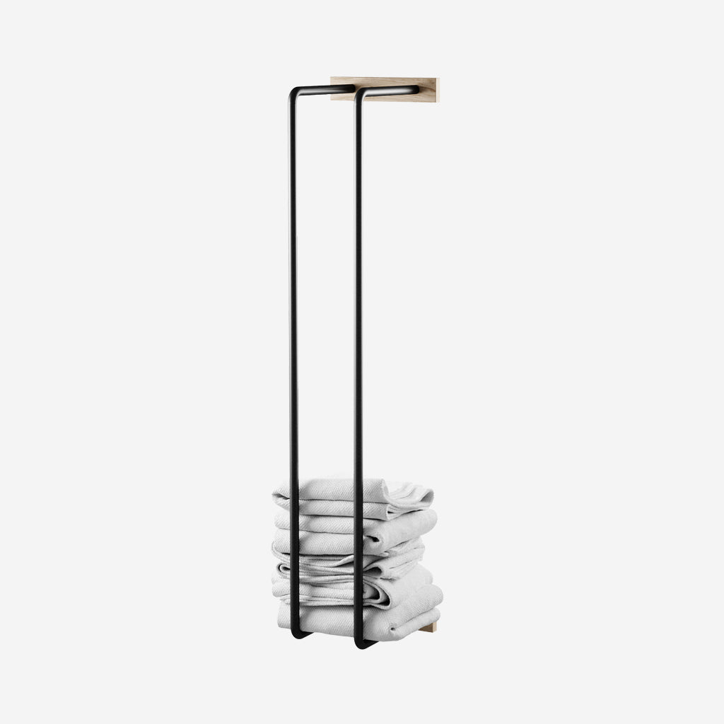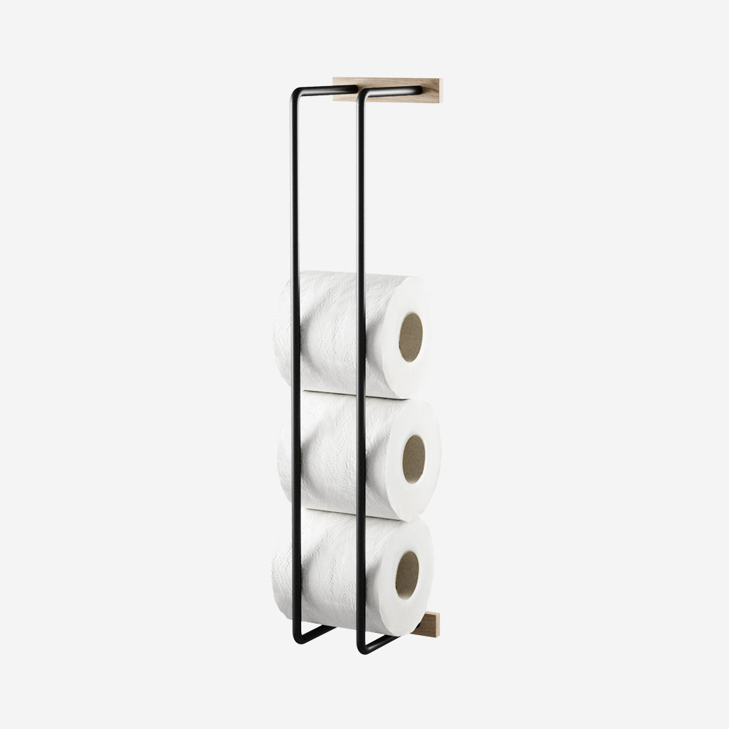 Bathroom Rack is a smaller version of our Towel Rack and serves as practical and stylish storage of toilet paper rolls. The panels made from oak soften the black metal frame, giving your bathroom a hint of the spa look.