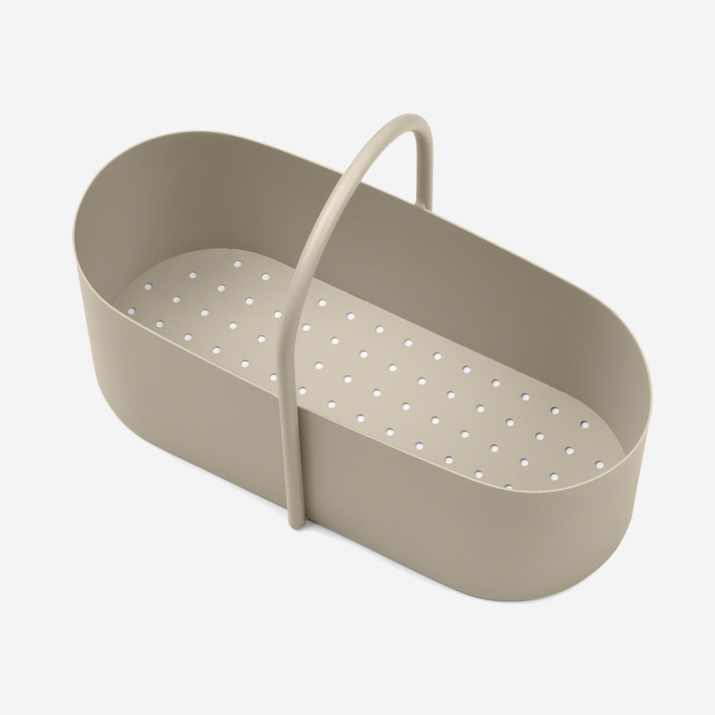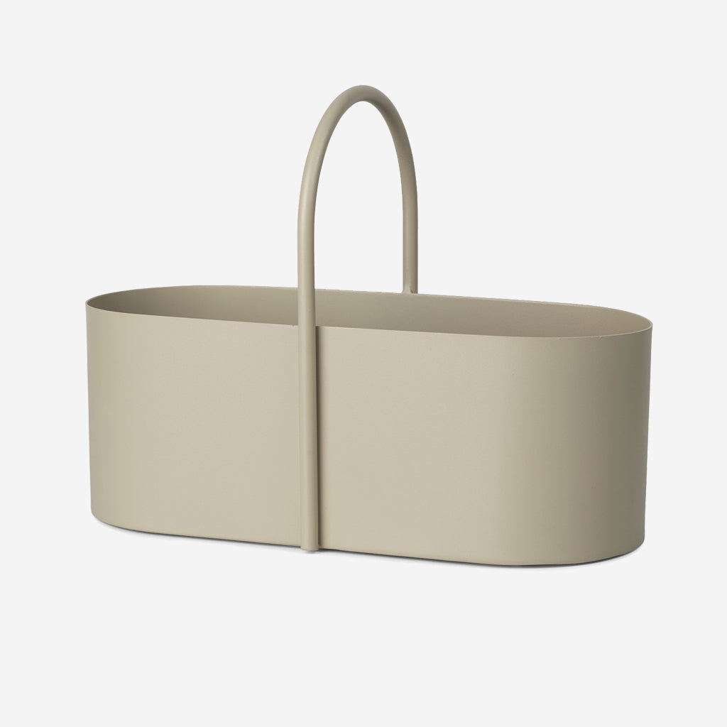The Grib Toolbox is a handy solution for your various indoor-outdoor needs. Made from powder-coated metal, the gentle curves of its oval form are mirrored in the spherical handle, which rests comfortably in your palm when carried. We call it a toolbox, but you can use it for anything – gardening utensils, cleaning articles, office supplies or bathroom essentials.