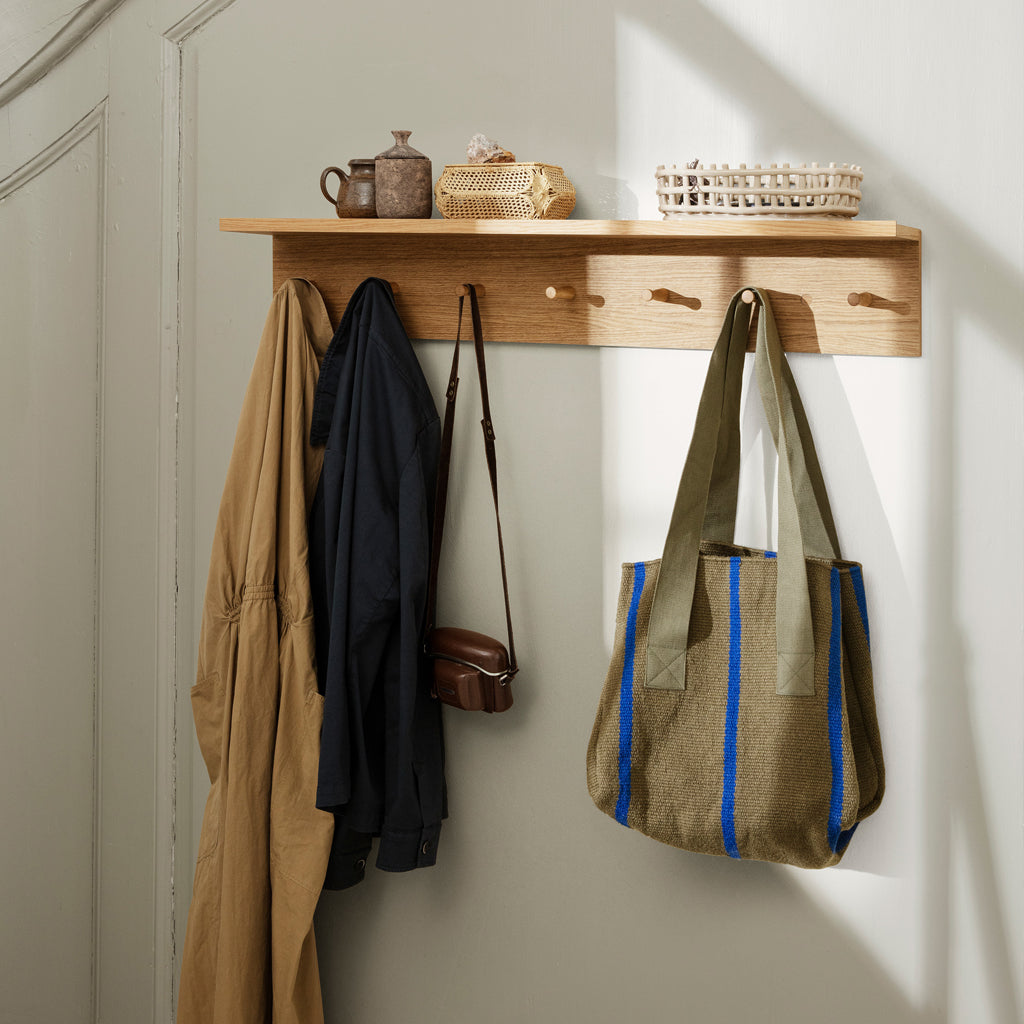The Place Rack explores how our need for a storage and display solution can be realised in one form. Made to be appreciated in the entire home, the Place Rack is easy to mount and can, for example, be used in the kitchen for dish towels and cherished tableware, in the hallway as a hatrack or for little knick-knacks in the kids’ room.