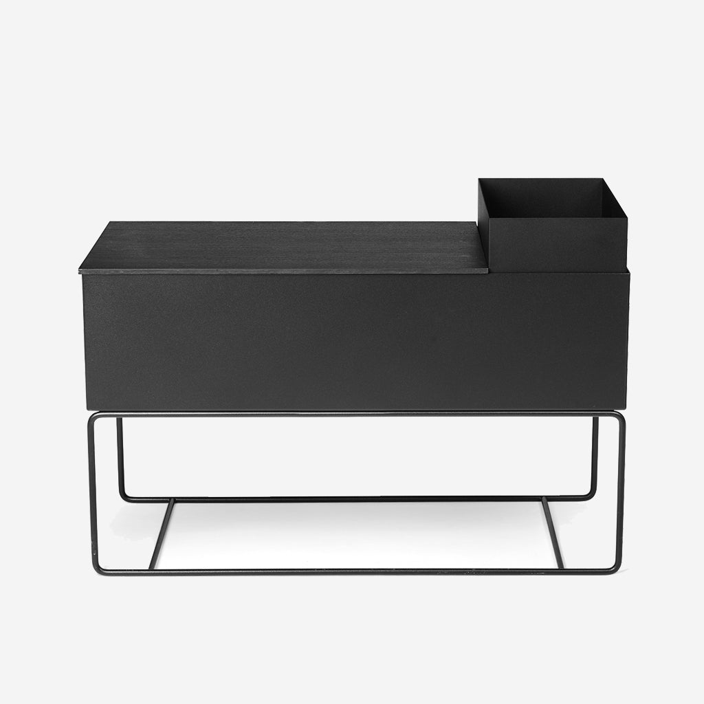Large, low and deep, this Plant Box container in powder-coated metal is equally suited to housing plants as it is storing everyday clutter – from magazines and books to toys and office supplies. Set on a slender yet sturdy frame, the timeless design in go-with-anything black can also be used with the corresponding lid to create a seat in a hallway or extra surface space.