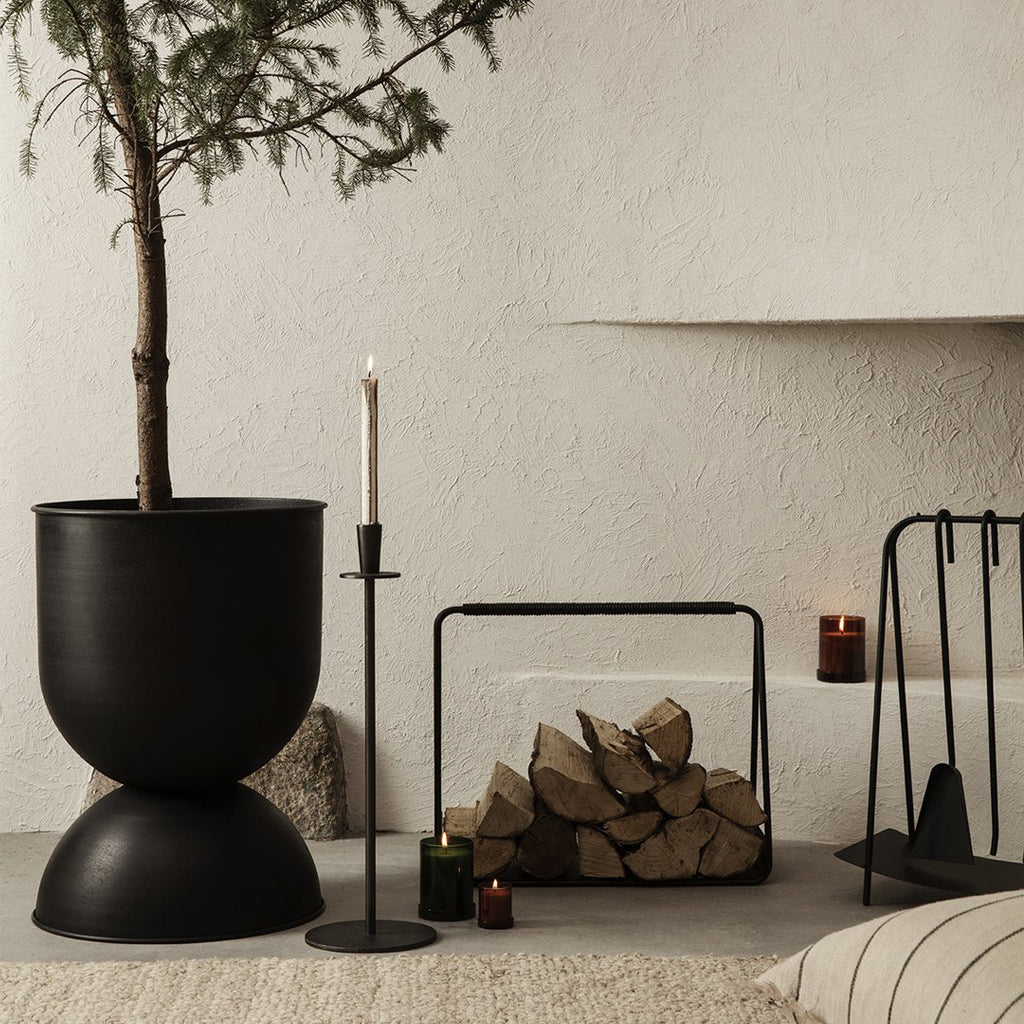 Store your firewood in style with the Port Wood Basket. Merging functionality and aesthetics, the metal basket’s clean lines are complimented by its simple form, which features gently rounded edges and a leather-clad handle. Pair it with the Port Fireplace Tools to complete the set.