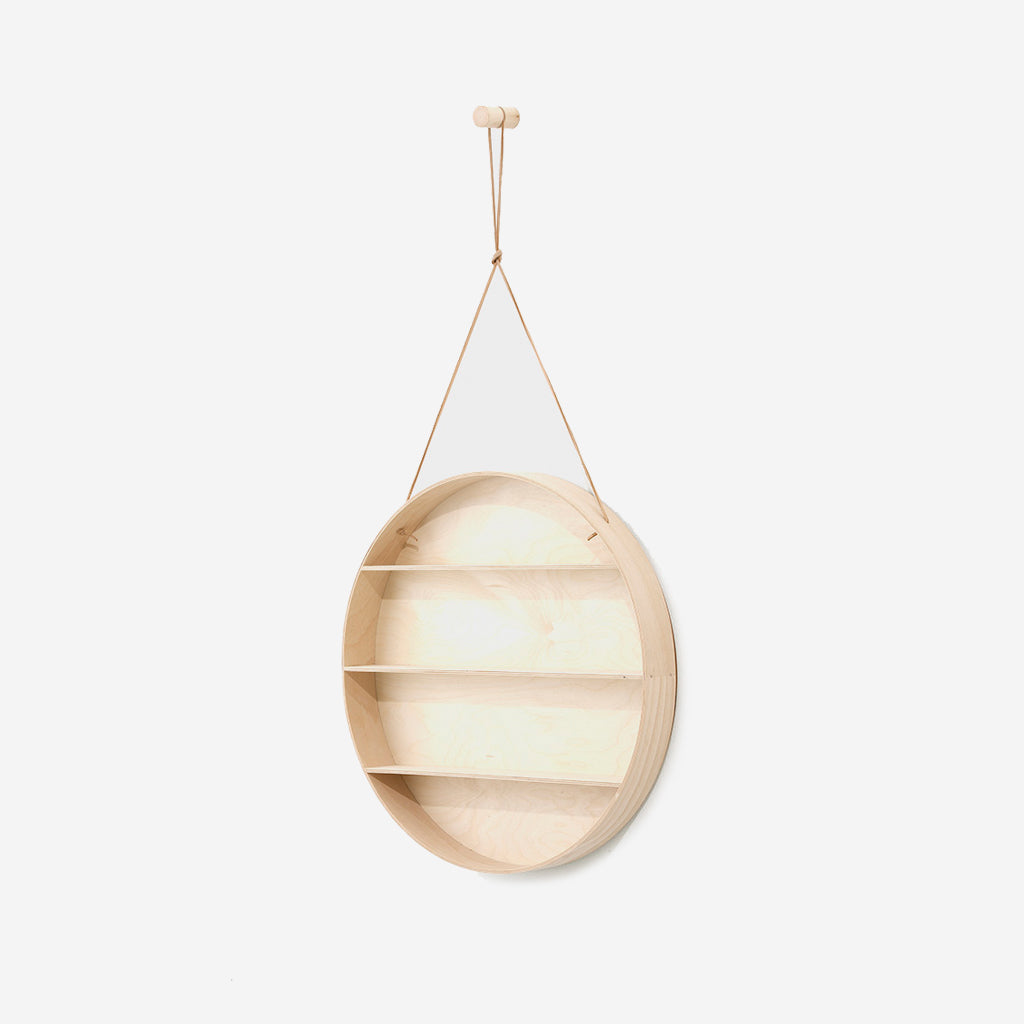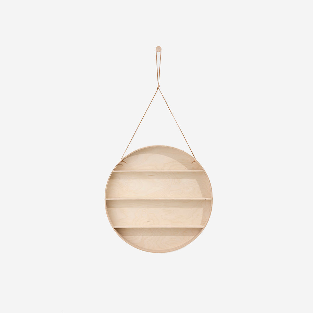 The Round Dorm will fit in any home and will give the wall an elegant, unique and delicate look. Use it for storage or all your favourite little things. It is made of beech and birch plywood, hangs in a leather string and comes with a beech hook.