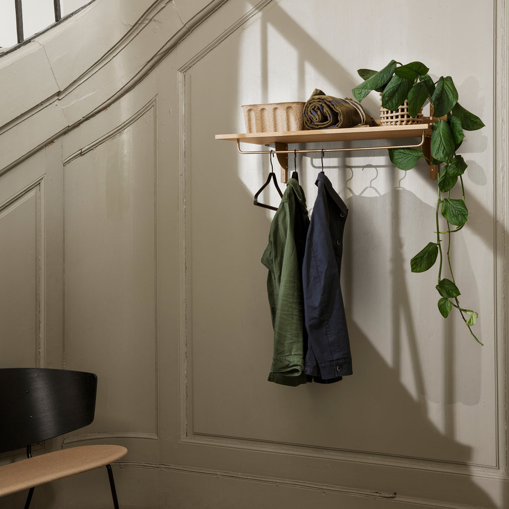 A new and modern take on mid-century shelving units, Sector is defined by its sturdy simplicity and classic combination of wood and brass. Use it on its own in your hallway area to hang your coat, or together with other elements from the Sector collection, as a way to create a functional dressing area in the bedroom.