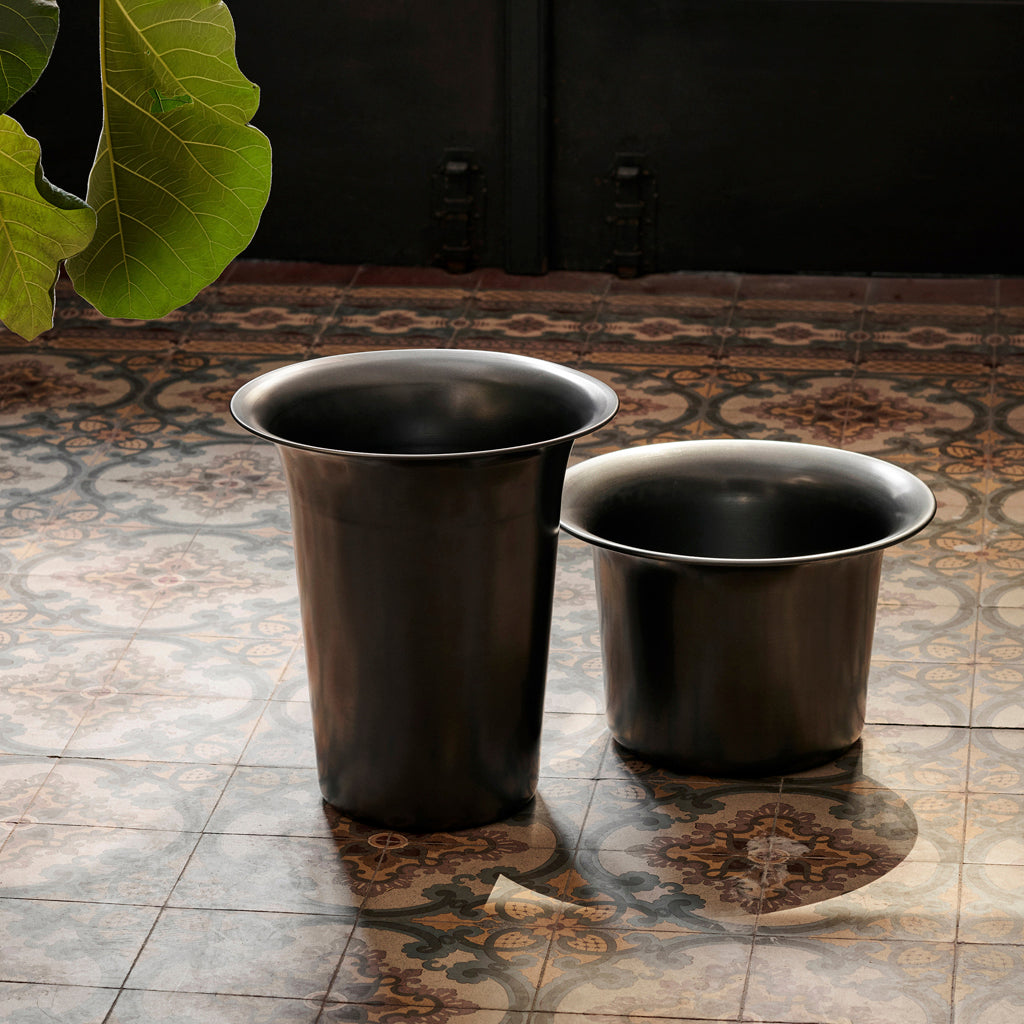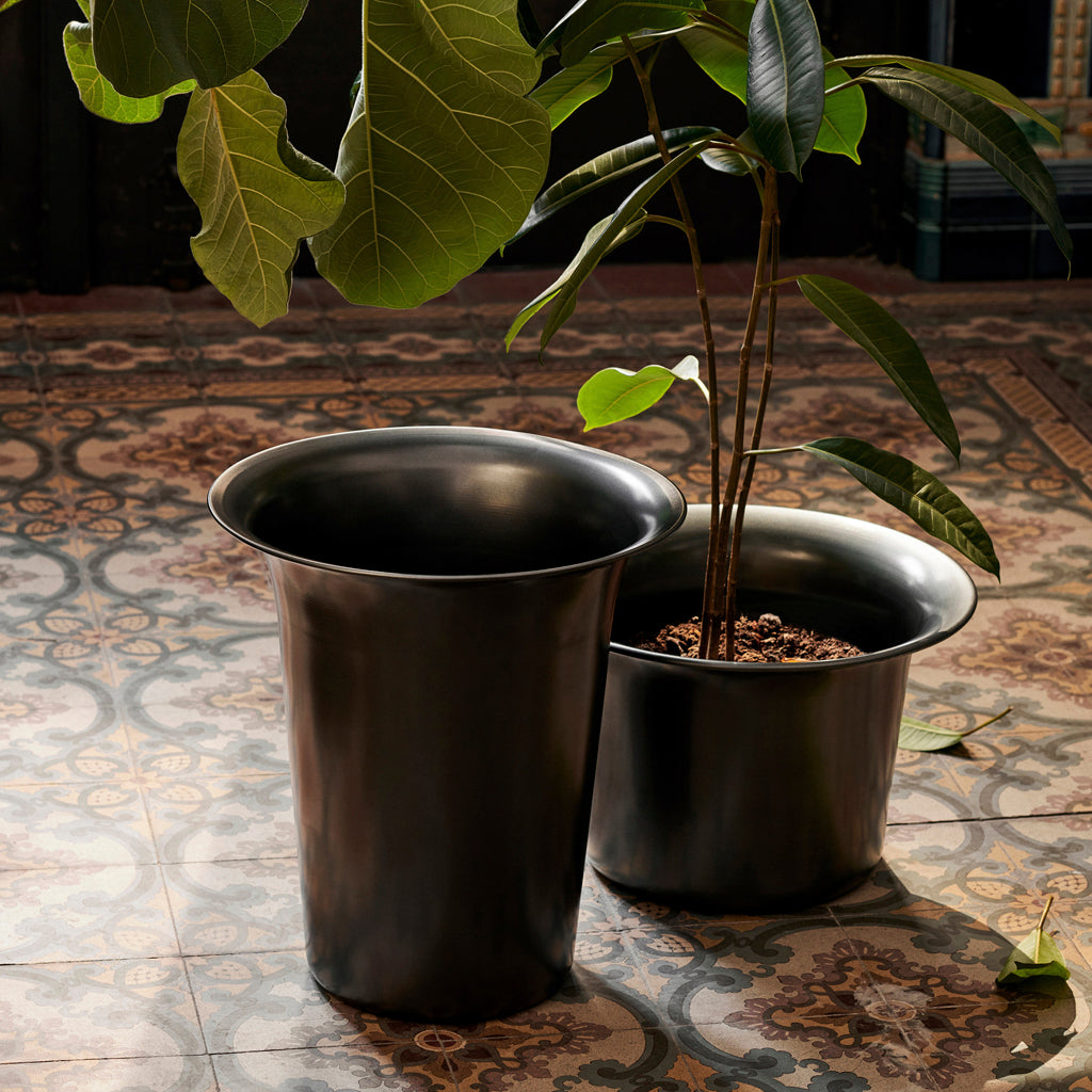 Crafted entirely from aluminium with a black metal finish, the Spun Alu Basket is a lightweight, durable and versatile piece that can be used in a multitude of different settings around the home. The basket has a sleek and slender shape owing to the process of metal spinning that also inspired its name. Use it as a plant pot for your favourite greenery, as a vase for grand flower arrangements or as a paper bin for the office.