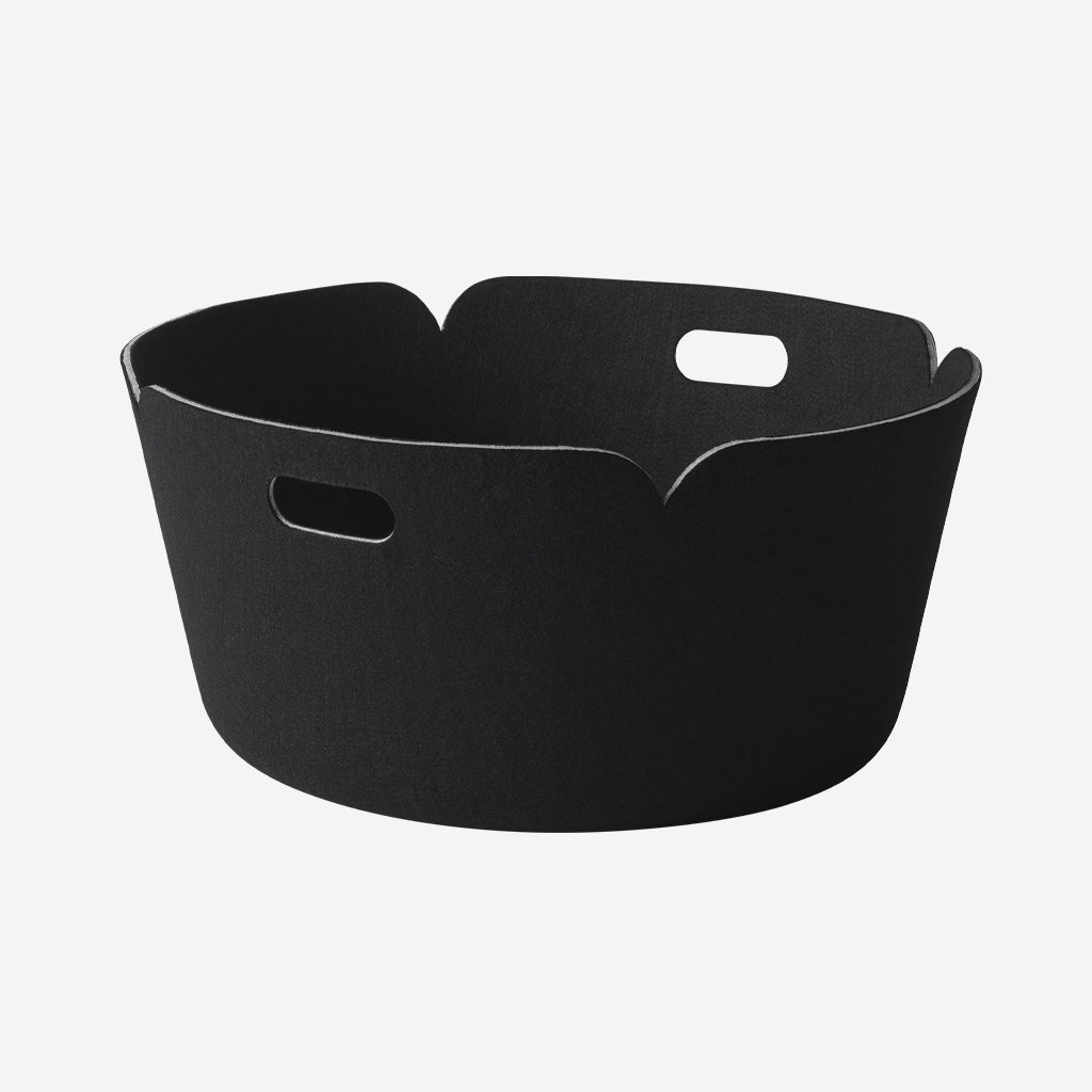 Made from a felt made of recycled plastic bottle fibers, the Restore Round Basket is a functional and versatile storage unit that can be used for almost any object from laundry to blankets to children’s toys.