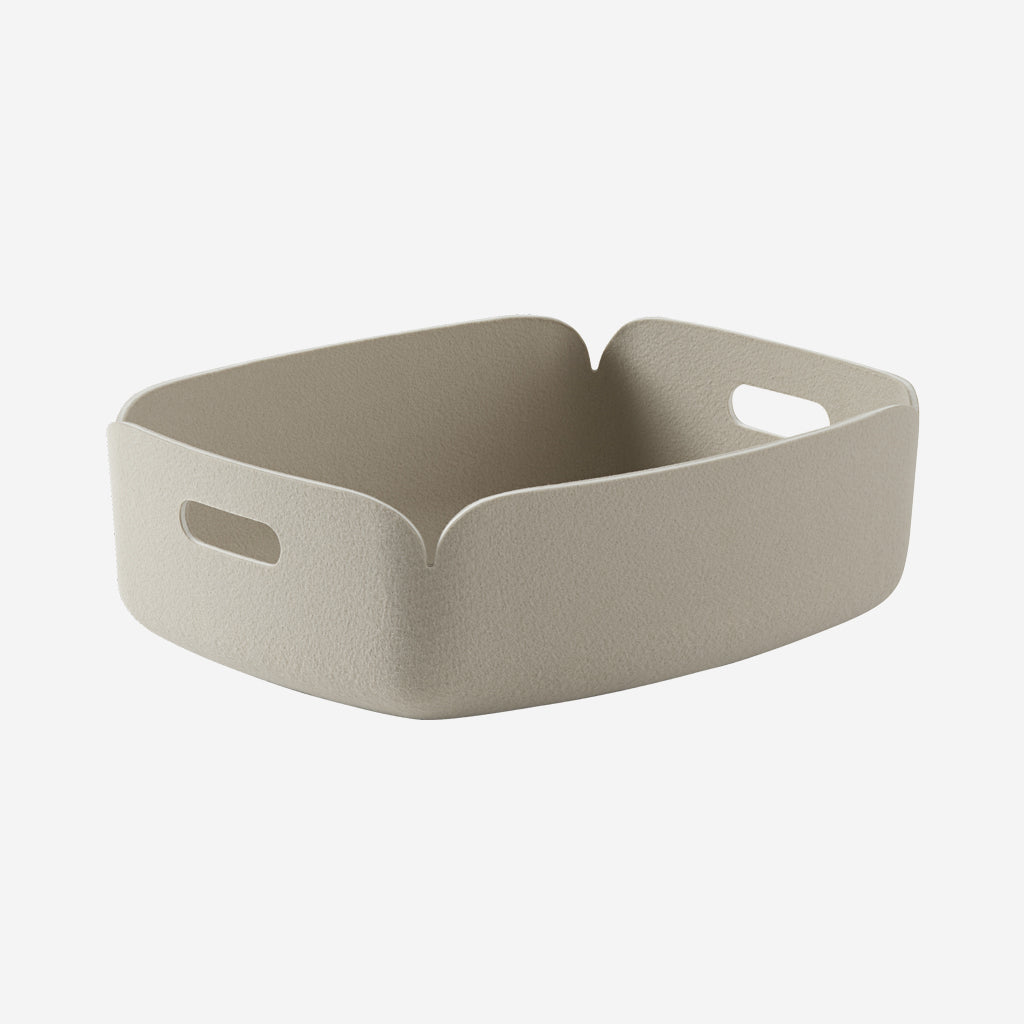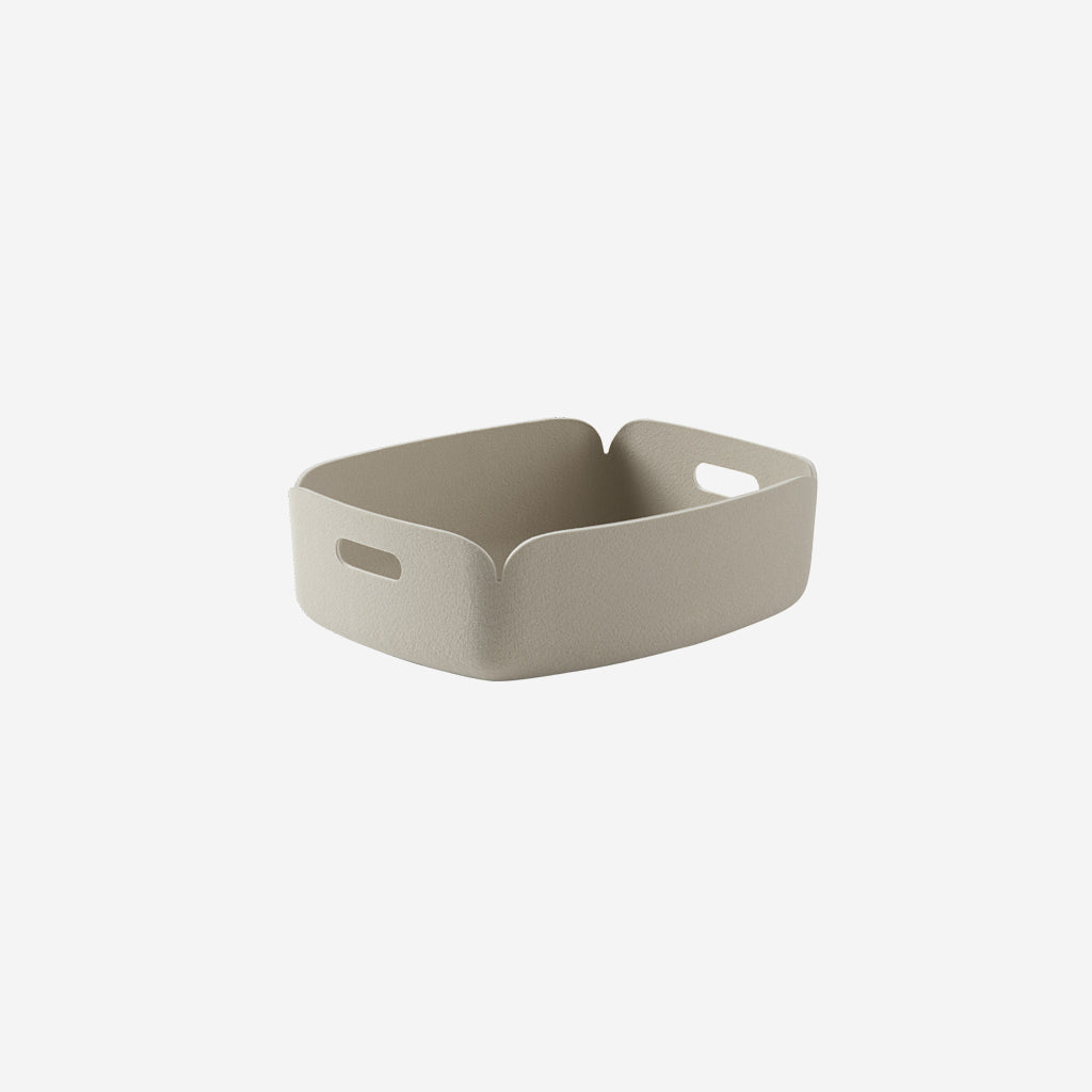Made from a felt made of recycled plastic bottle fibers, the Restore Round Basket is a functional and versatile storage unit that can be used for almost any object from laundry to blankets to children’s toys.