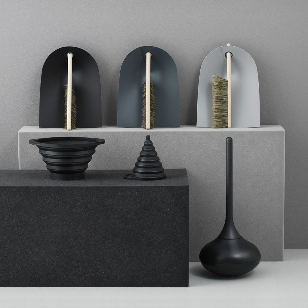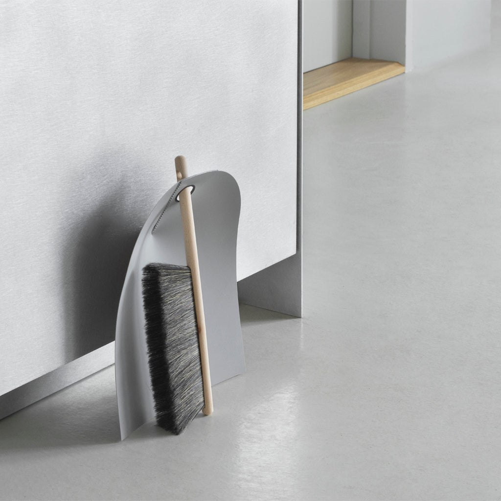 The dustpan is, in all its simplicity, constructed from a piece of flat plastic, shaped to fit comfortably in the hand. The thin and flexible material makes it easy to collect all kinds of dirt. The broom is made of wood and natural bristles and combines traditional craftsmanship and modern production, ensuring durability and a simple expression of design.