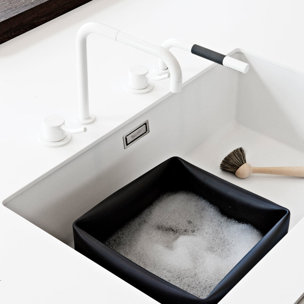 Washing-up Bowl is an innovative and flexible piece of kitchen equipment that breaks up the boredom of everyday routines. It oozes simplicity, cleanliness and Scandinavian elegance.