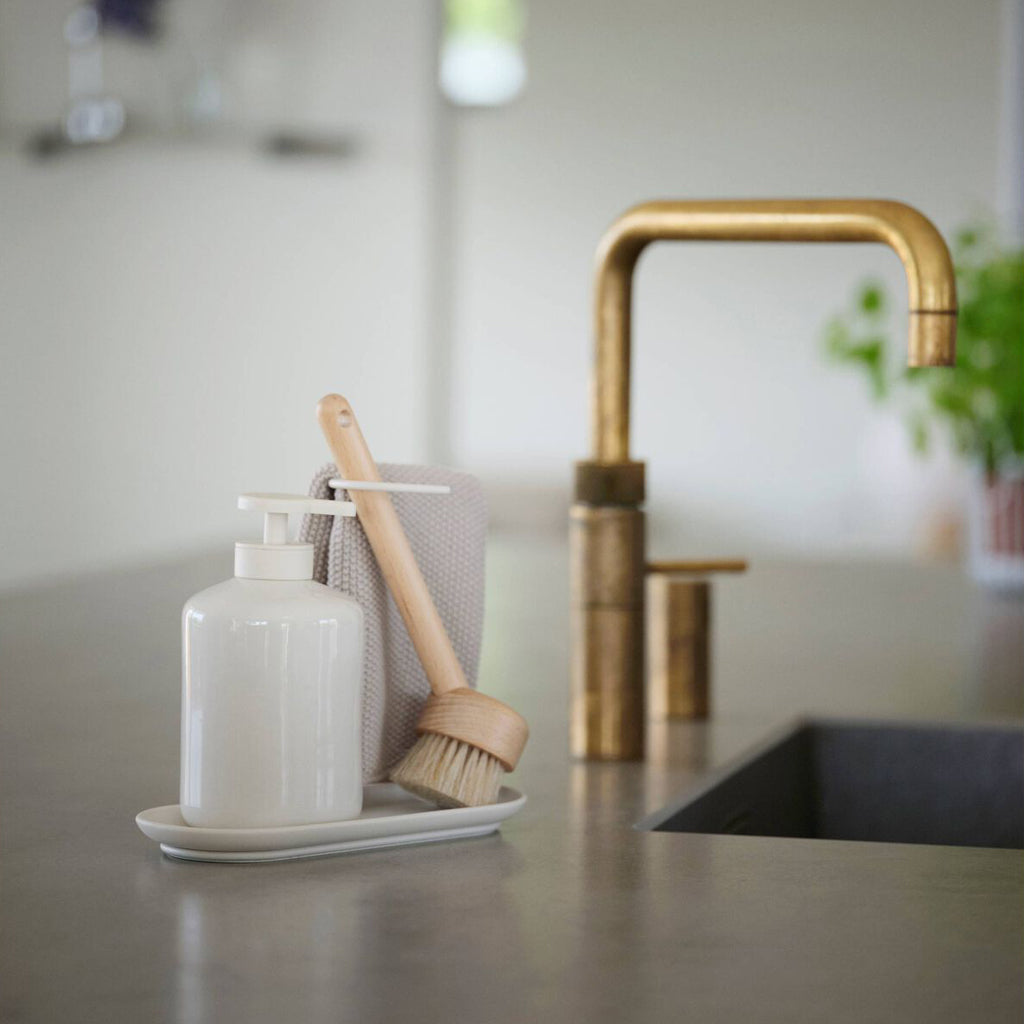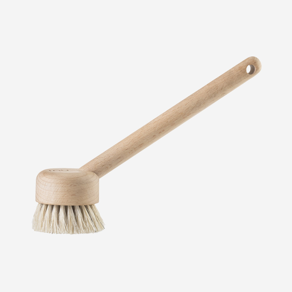 The Inu dish brush is made of beech and treated with beeswax. Together with the round shaft, the beeswax ensures a soft and comfortable grip. The angle between head and shaft is absolutely perfect. You can already feel it at the first cup. A round hole at the end of the handle allows for a strap to be inserted if you prefer the brush to hang.