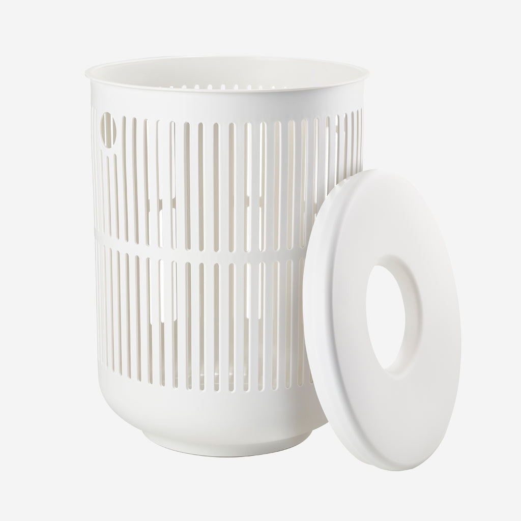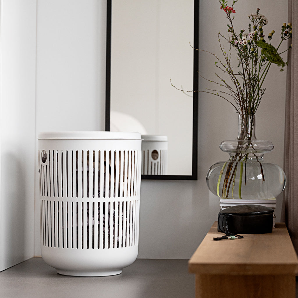 Organic and practical – that’s the laundry basket from Zone’s Ume series in a nutshell. With this laundry basket, organising and carrying laundry is a breeze. It has an easy-to-lift lid but you don’t always need to use it, because socks and other small items can be inserted through the opening in the middle. On the side are two smaller openings that serve as handles when the laundry basket needs to be moved.