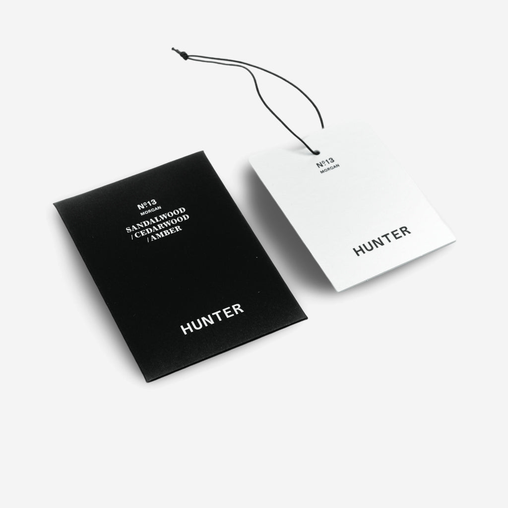 Hunter Candles Morgan / Sandalwood Cedar Amber Scent Card