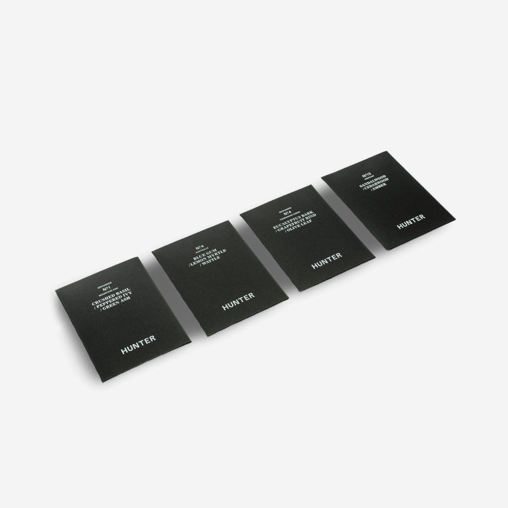 Discover a long-lasting hint of luxury designed to scent your everyday spaces. Hunter's Tasmanian Creek Scent Cards are air freshener cards, developed with moments of indulgence in mind. Each card emanates its olfactive aura for up to one month – perfect for gently permeating enclosed spaces like wardrobes, drawers, luggage or your car.