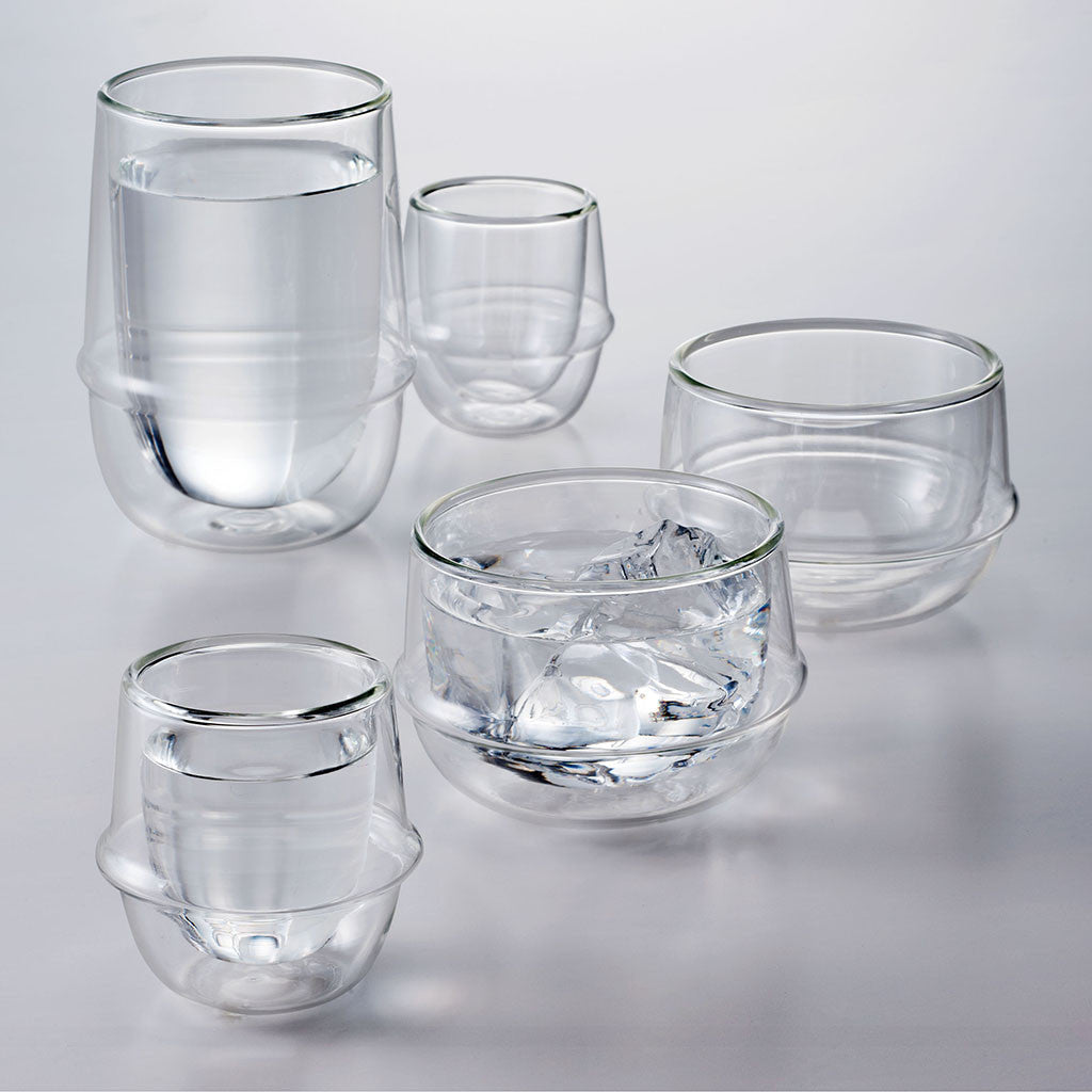 Kinto's Kronos Double Wall Iced Tea Cup makes beverages look like they are floating in air with a double wall structure. The ring supports your fingers for easy gripping, and the cup has an ideal angle for drinking. With thermal insulated construction, the cups maintain the temperature of hot and cold drinks for a long time. No condensation is formed, so your table will not get wet. The items can also be perfect for serving desserts or appetizers.