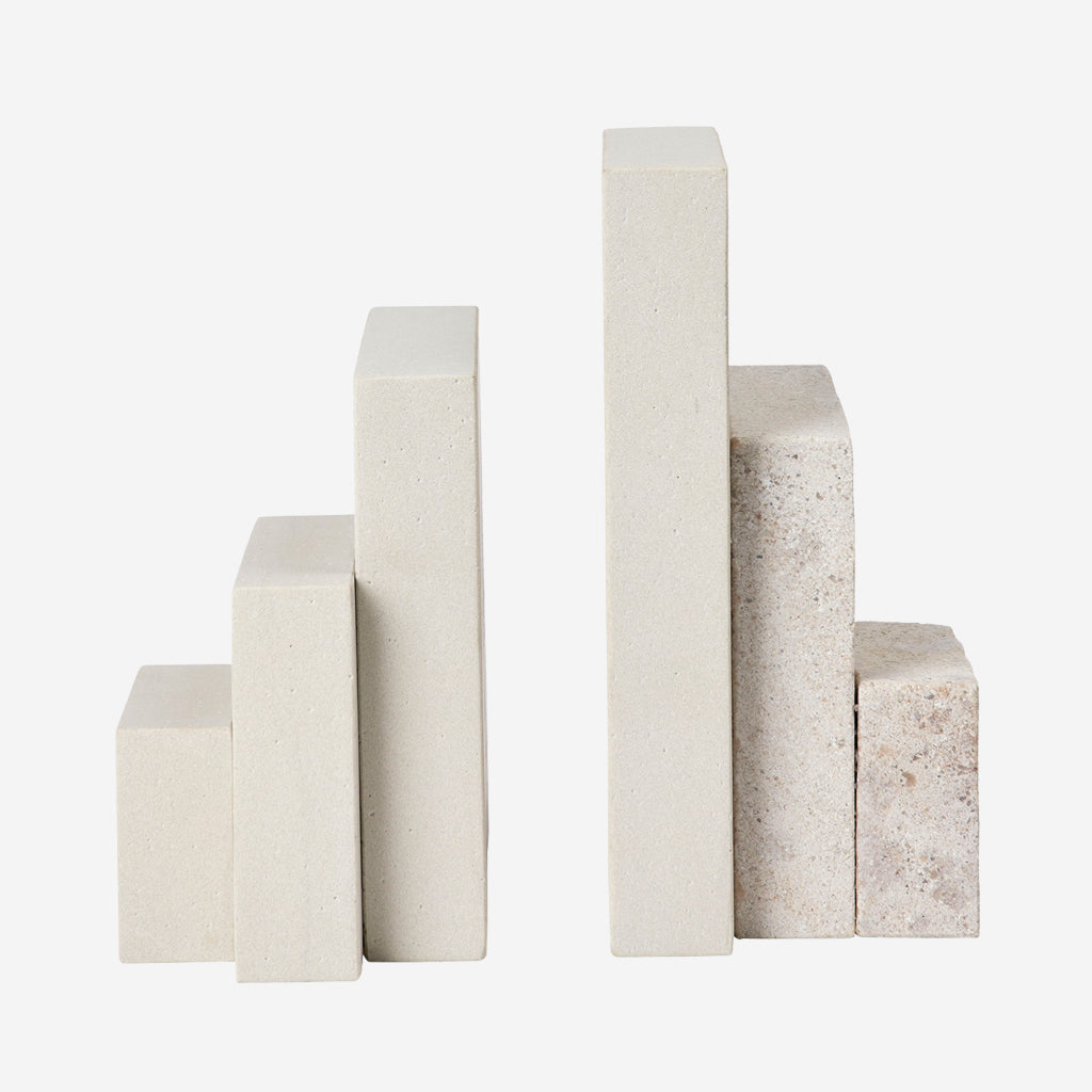 The Bookend Sculpture blends functionality and artistic expression. Each piece, hewn from blocks of light grey marble, is tailored to complement and reflect the contours of the books they secure. In action, they produce a mesmerizing effect, seemingly blending into the books they support, creating a visual harmony between the sculpture and the literature.