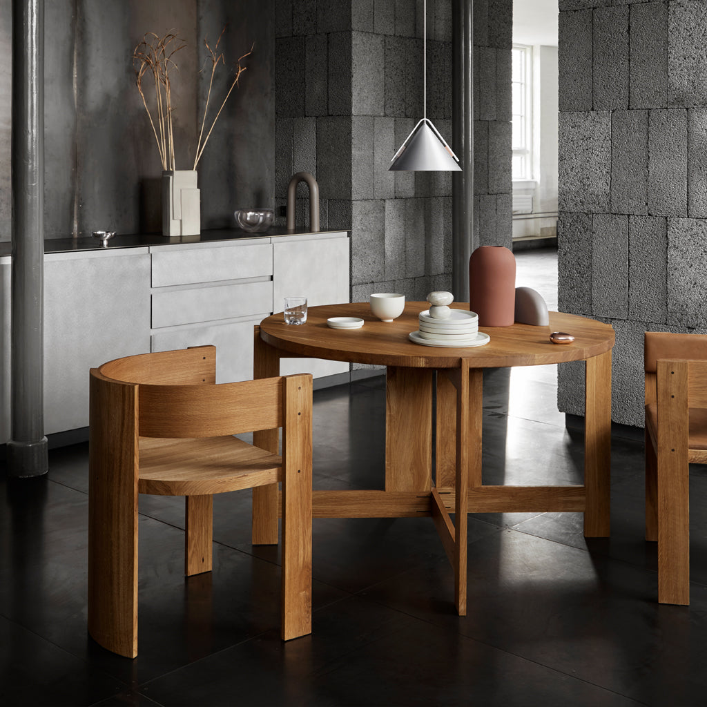 The Collector dining table is made from solid oak and the strength and detailed craftsmanship are embodied from every angle. A dining table for the modern interior that truly highlighting the beauty and versatility of natural materials in design. Comes flat-packed for easy handling