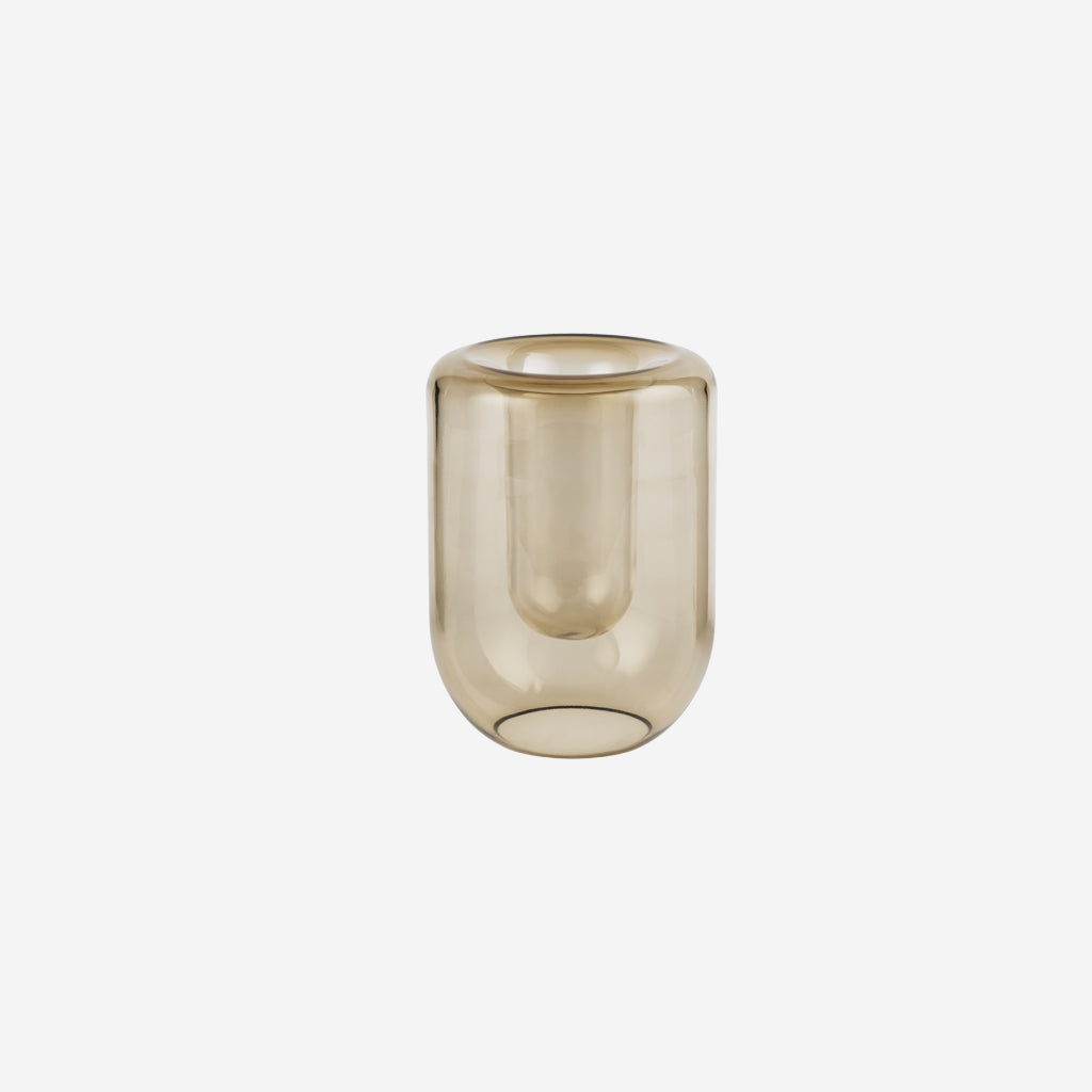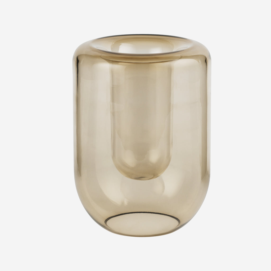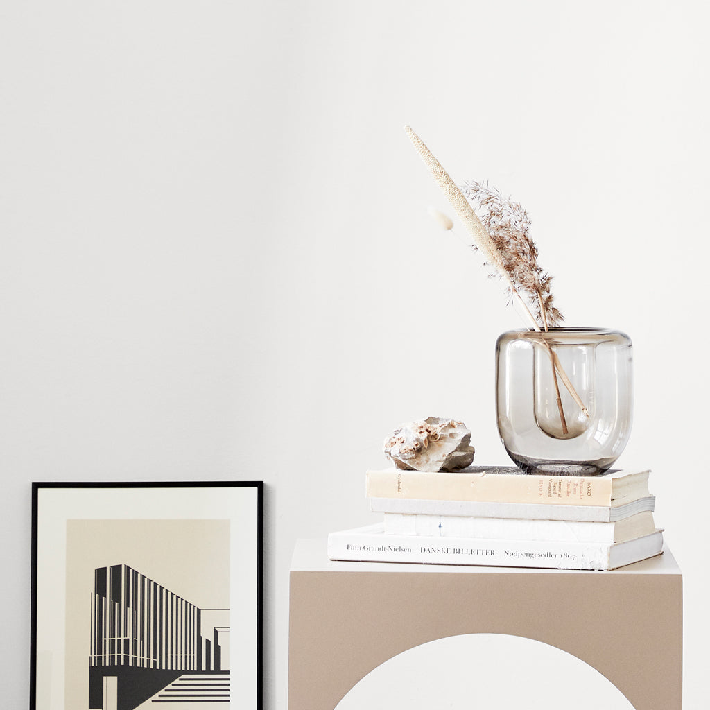 A large glass vase with soft rounded curves and a minimalist expression by Kristina Dam. Simple and functional, the opal vase is beautiful by itself on a shelf or as a demure vessel for all types of flowers.