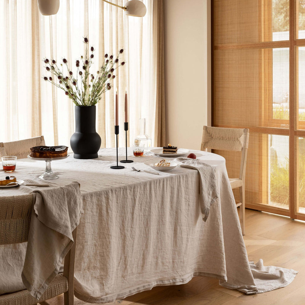 L&M Home's Terrace table linen boasts understated elegance, crafted using a buttery soft 55% French linen and 45% cotton blend. For the base of that casual Sunday lunch or take it to the next level for a superior dining experience. A timeless choice for all your entertaining needs, available in White & Oatmeal.