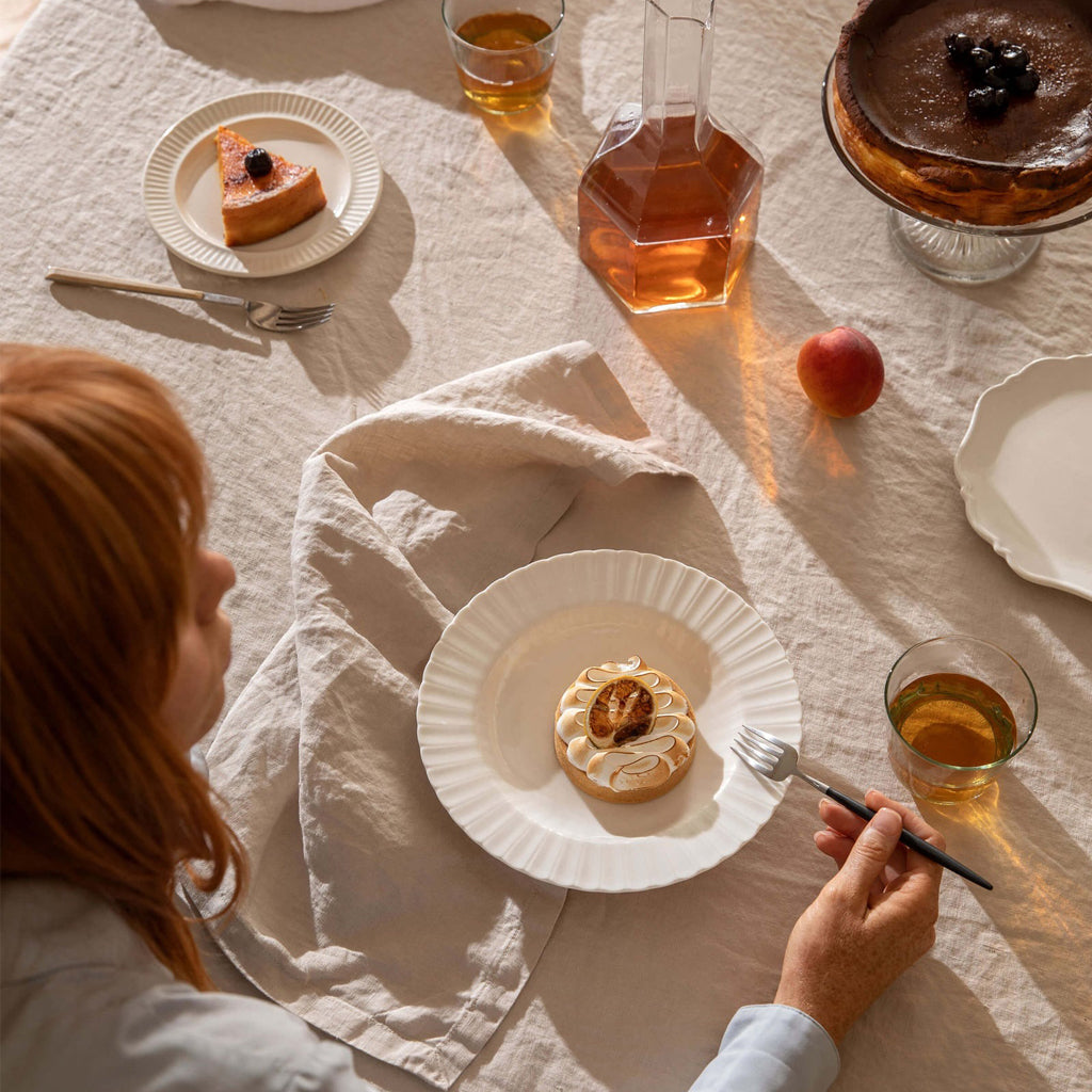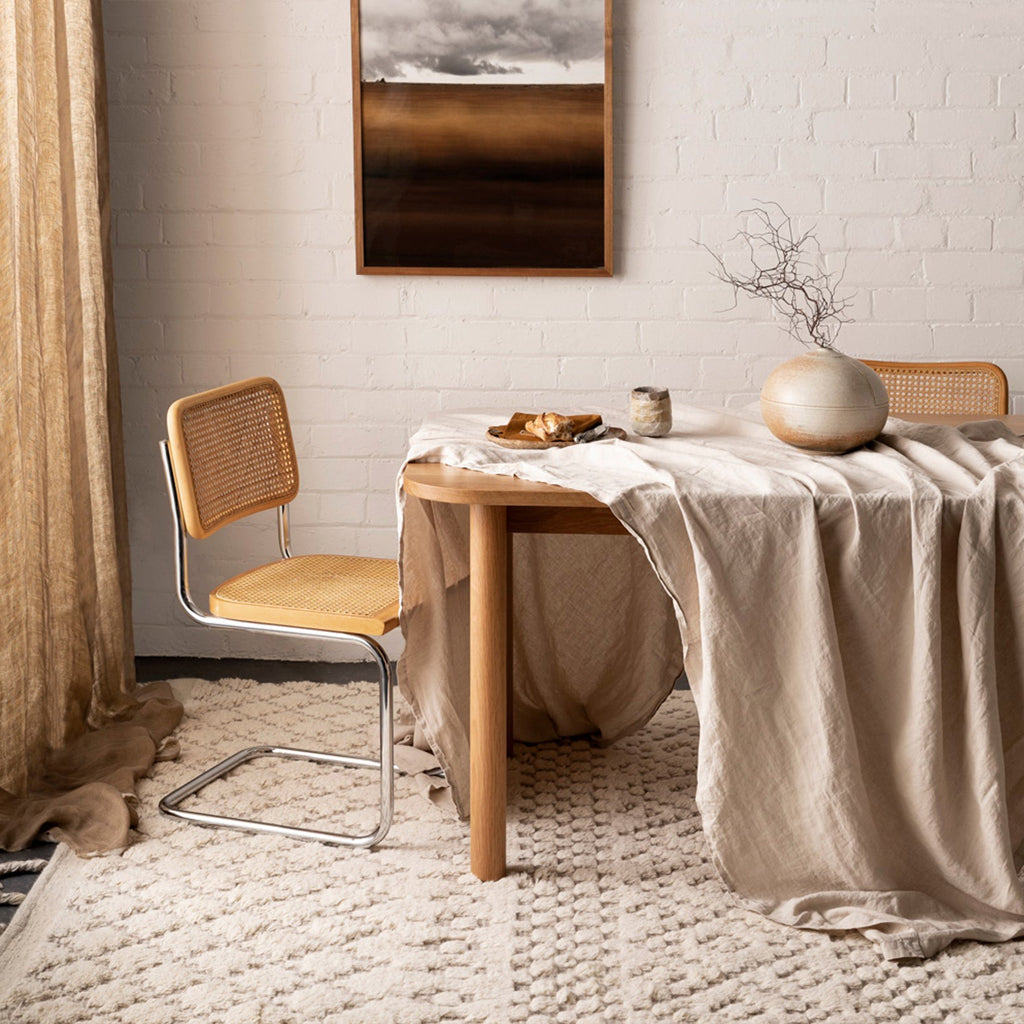 LM Home's Terrace table linen boasts understated elegance, crafted using a buttery soft 55% French linen and 45% cotton blend. For the base of that casual Sunday lunch or take it to the next level for a superior dining experience. A timeless choice for all your entertaining needs, available in White & Oatmeal.