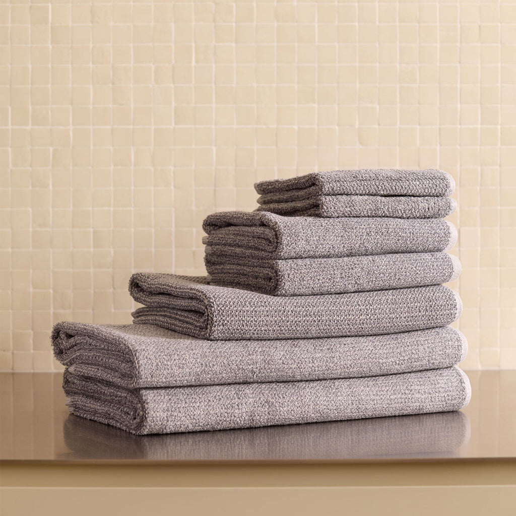 L&M Home's Gree\y Tweed Face Towel is a modern and elegant twist on a classic, with black, grey and white tones woven together to create a beautiful deep coal towel. This sophisticated and neutral towel will suit any bathroom and add plenty of texture. Generous sizes and 650gsm ensure these towels are soft and absorbent.