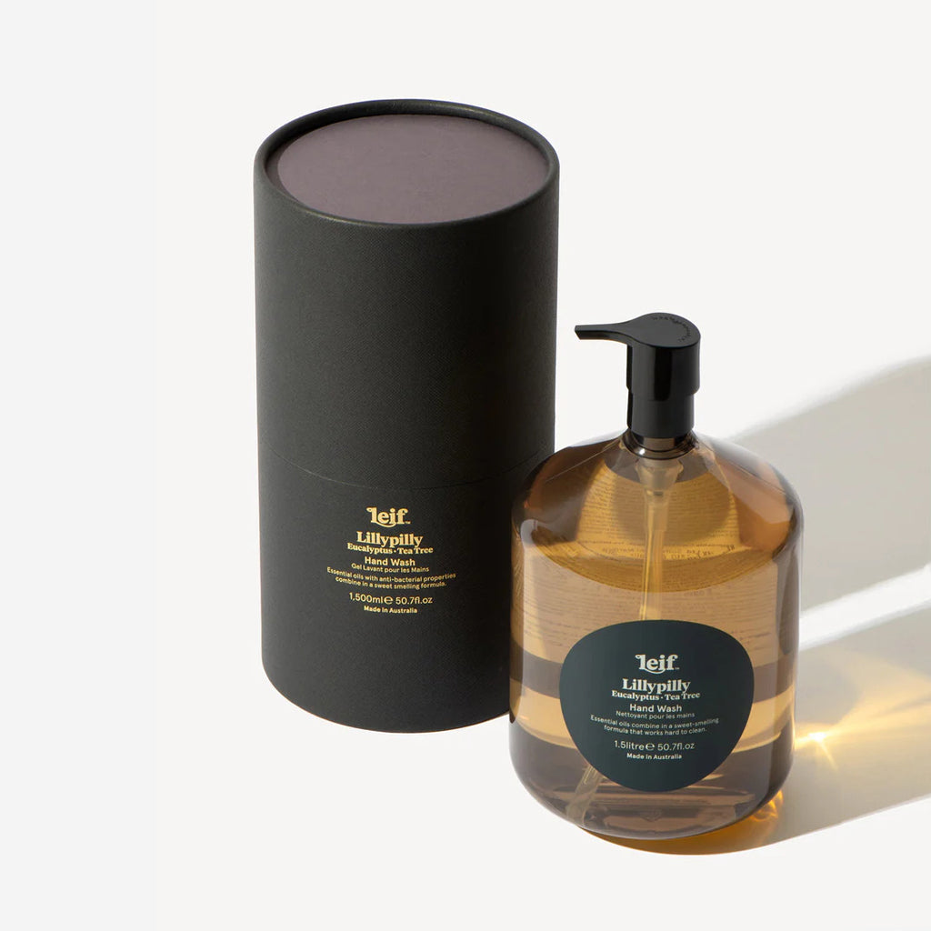 Leif's Lillypilly hand wash contains a combination of essential oils with antibacterial properties to create the original sweet-smelling formula. Super-fruit Lillypilly packs a potent punch rich in Vitamin C and antioxidants, while the menthol hit of Eucalyptus and Tea Tree is tempered by Peru Balsam.