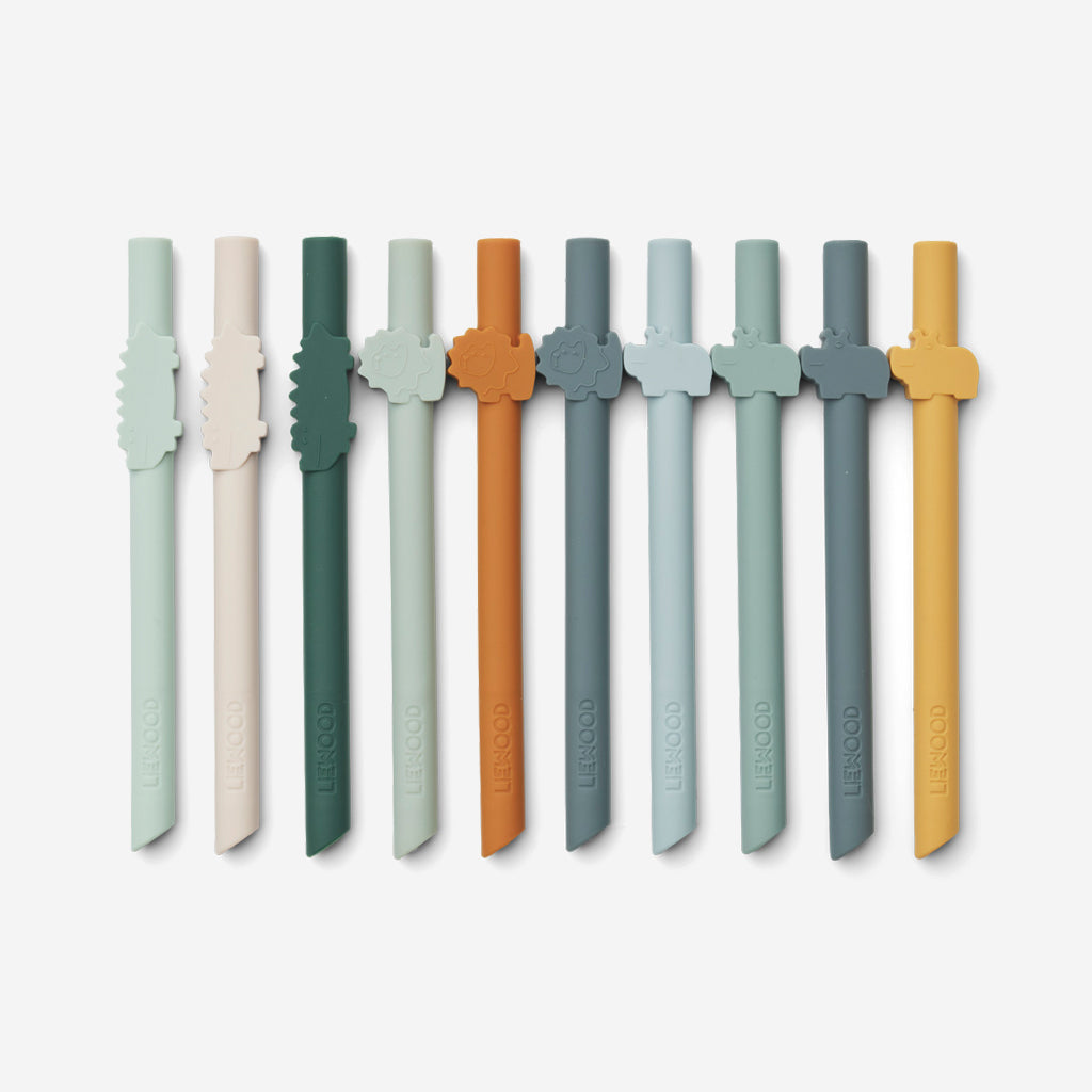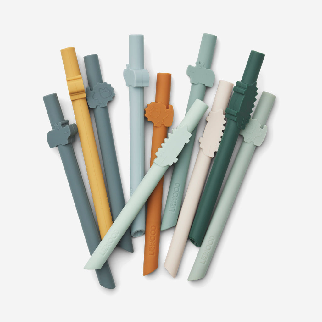 The Liewood Badu silicone straws, in safari blue mix, are a great alternative version to the throw-away straws and can be used again and again. With their cute safari animal details, the straws are a perfect addition for birthday parties, picnics, or just everyday fun.