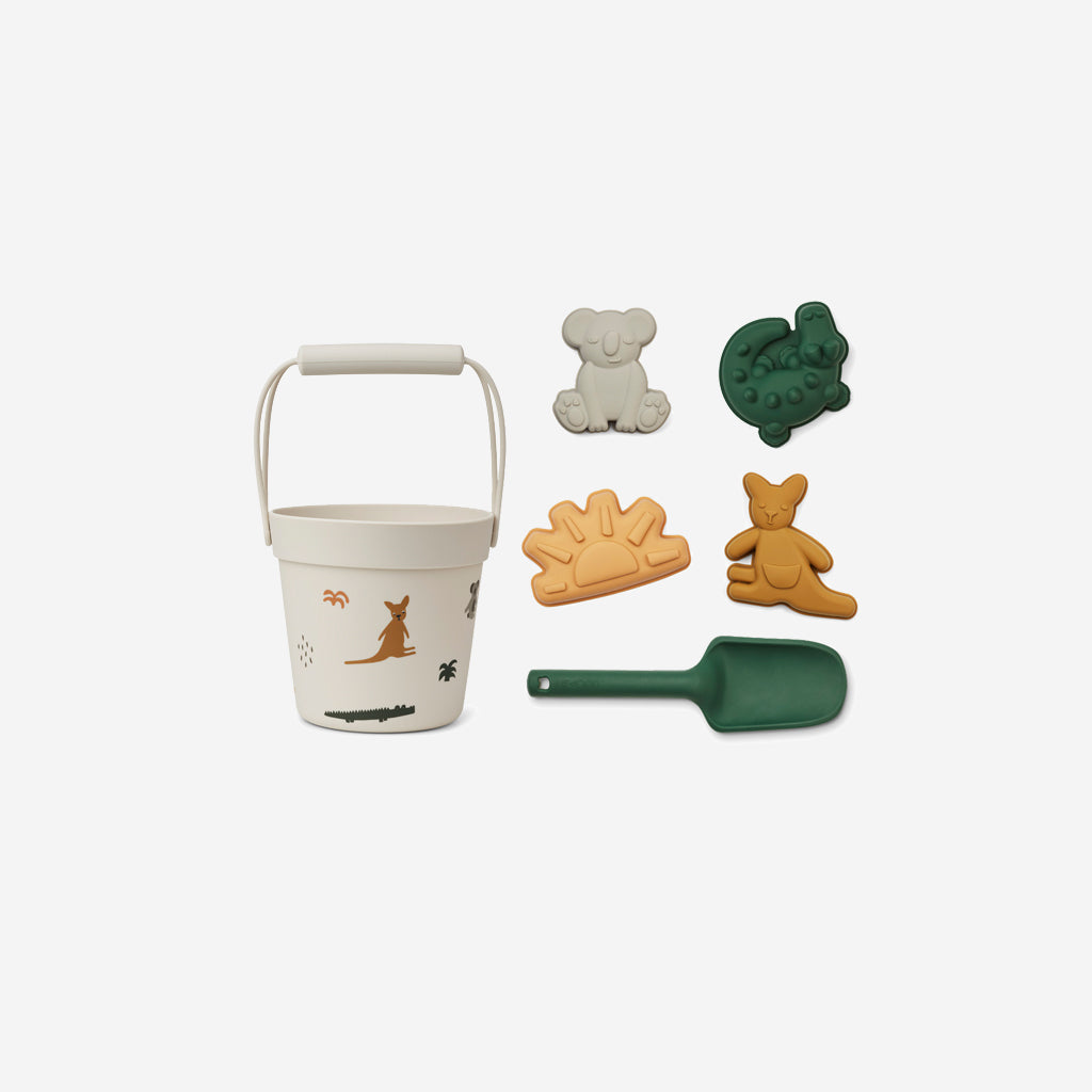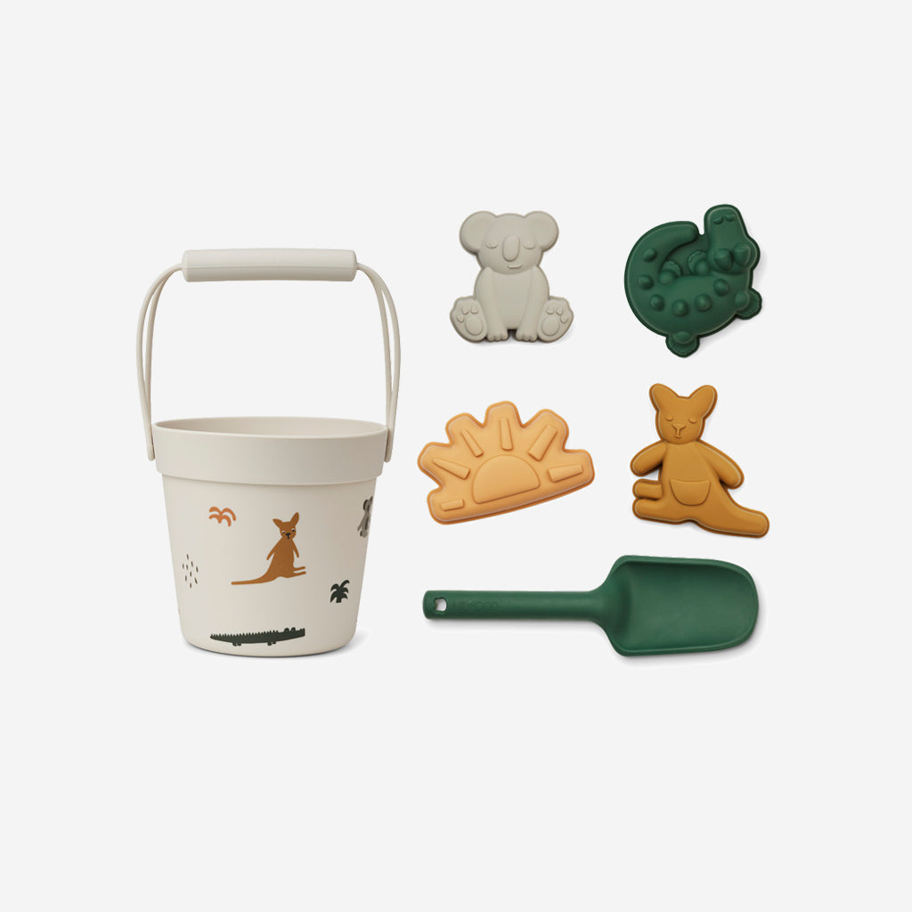 The Liewood Dante Beach Set in Aussie Sea Shells is the perfect beach partner for little children. Made from silicone, it is soft to the touch and bendable, making it very easy to carry around. The set includes a bucket with a handle, a shovel, and 4 beach moulds shaped as your favourite friends.