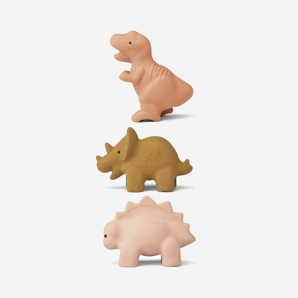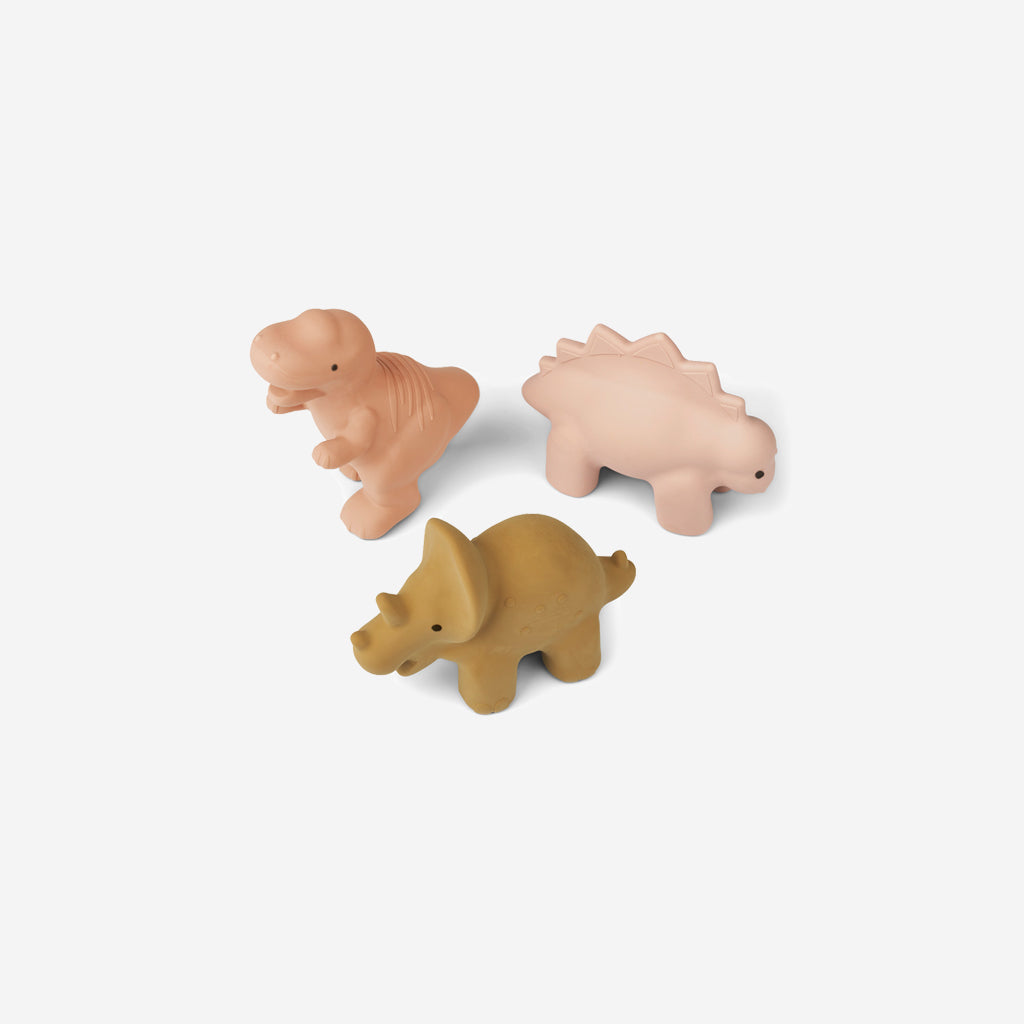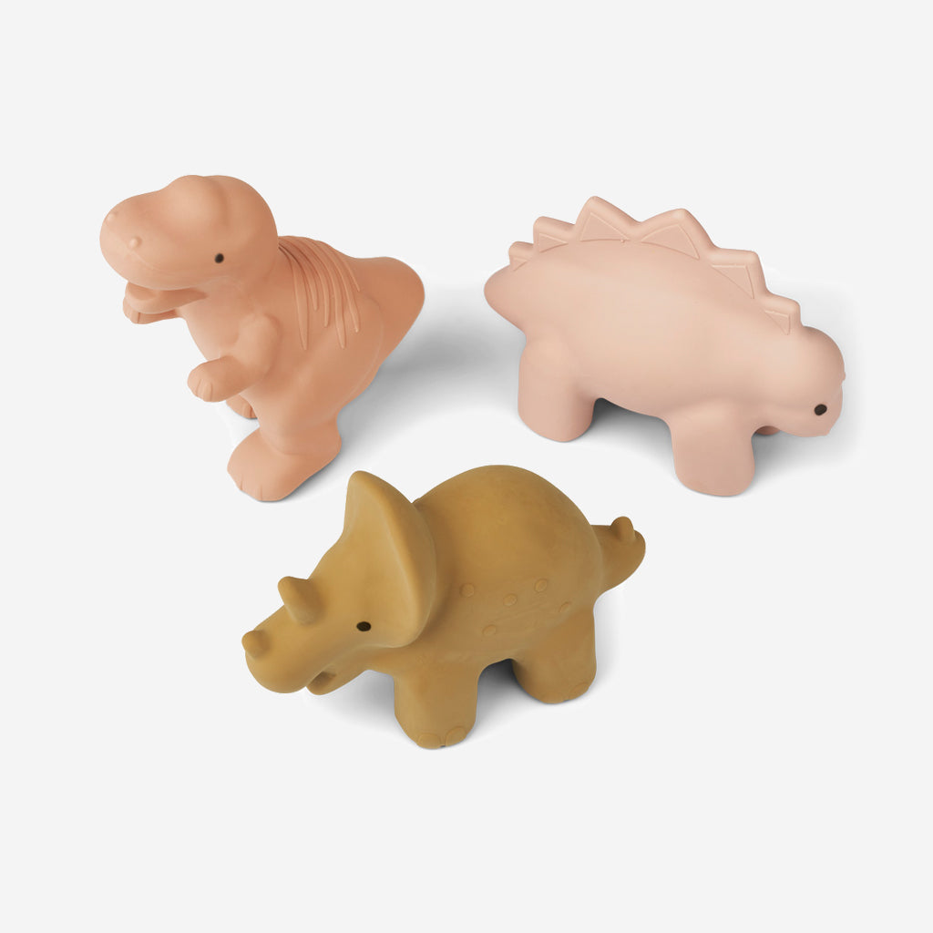 The Liewood David Toys pack, in rose mix, consists of three toy dinosaurs made from 100% natural rubber guaranteeing hours of entertainment in the bathtub or as toys in the children’s room.
