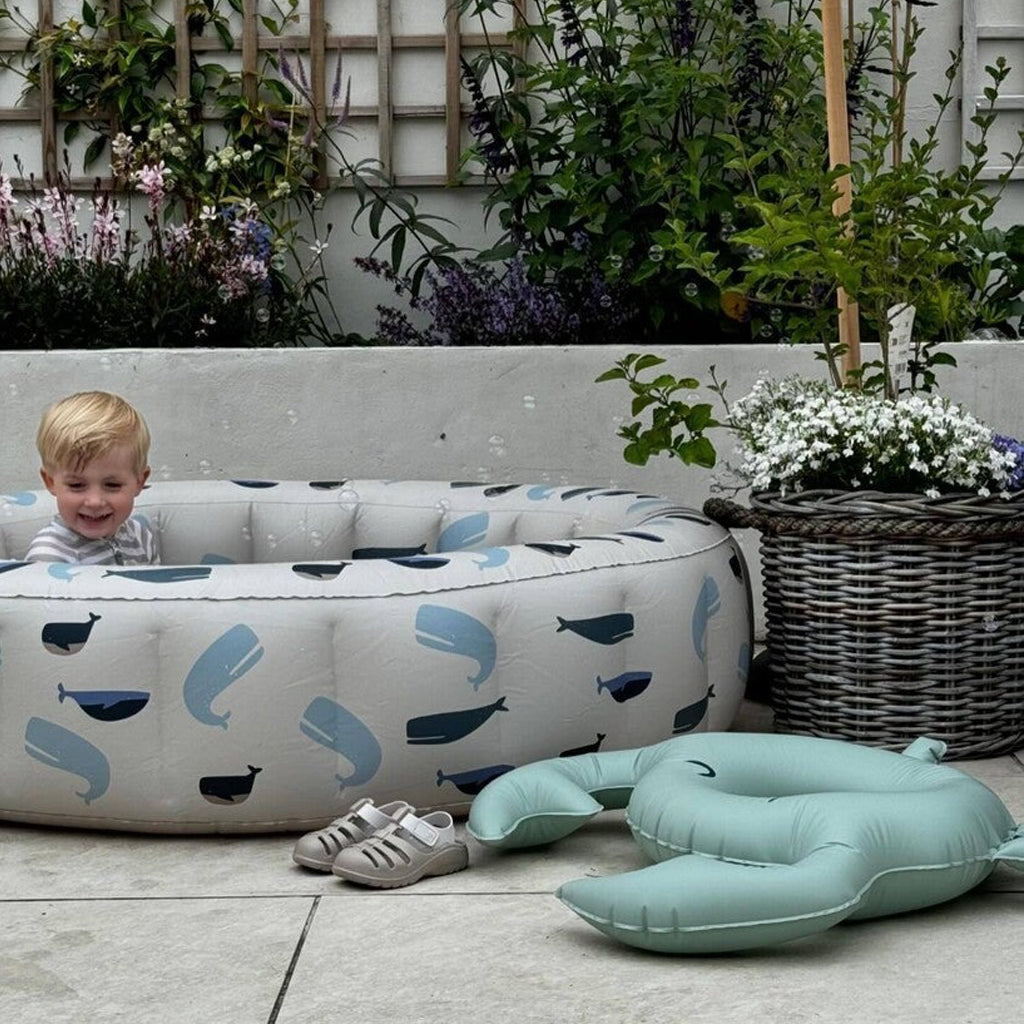 For splashy play or simply to cool off, the small, inflatable Kornelia pool is a must-have on warm summer days. Made of durable PVC, the design offers extra thick side walls and a small size, that is perfect for a toddler or two and easy to empty after a dip.