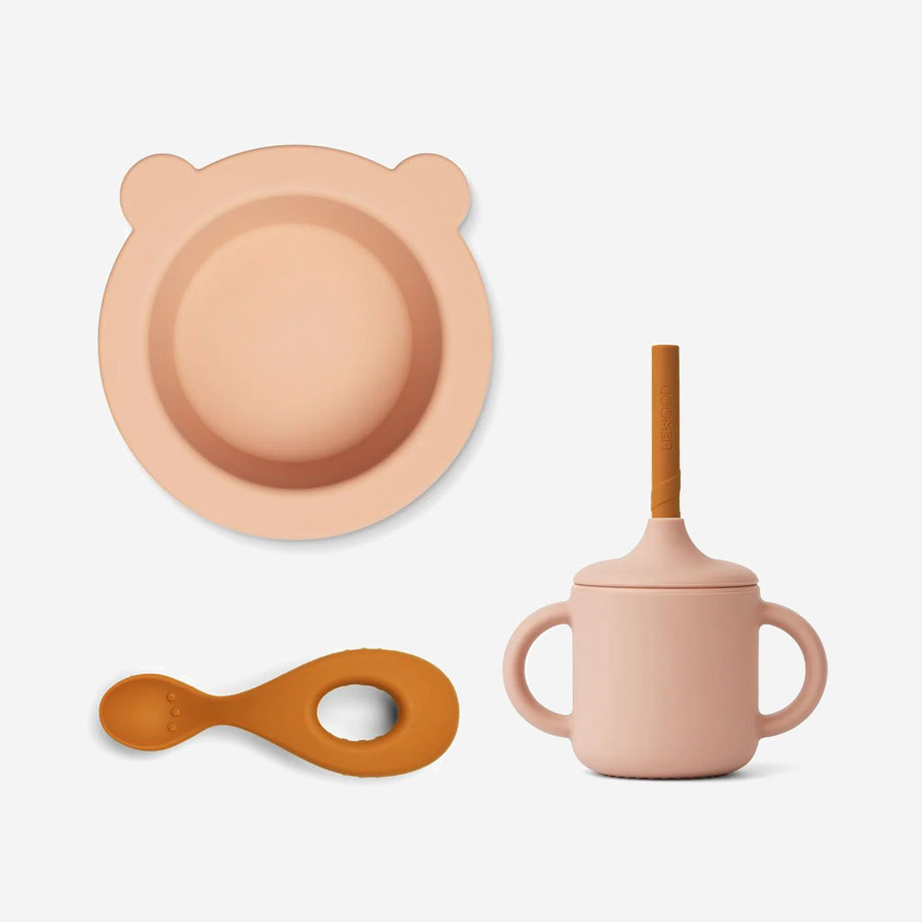 The Liewood Kali Bowl set in Rose mix, includes everything your baby needs at mealtime. With a bowl, cup and spoon, it is perfect for breakfast, lunch and dinner.