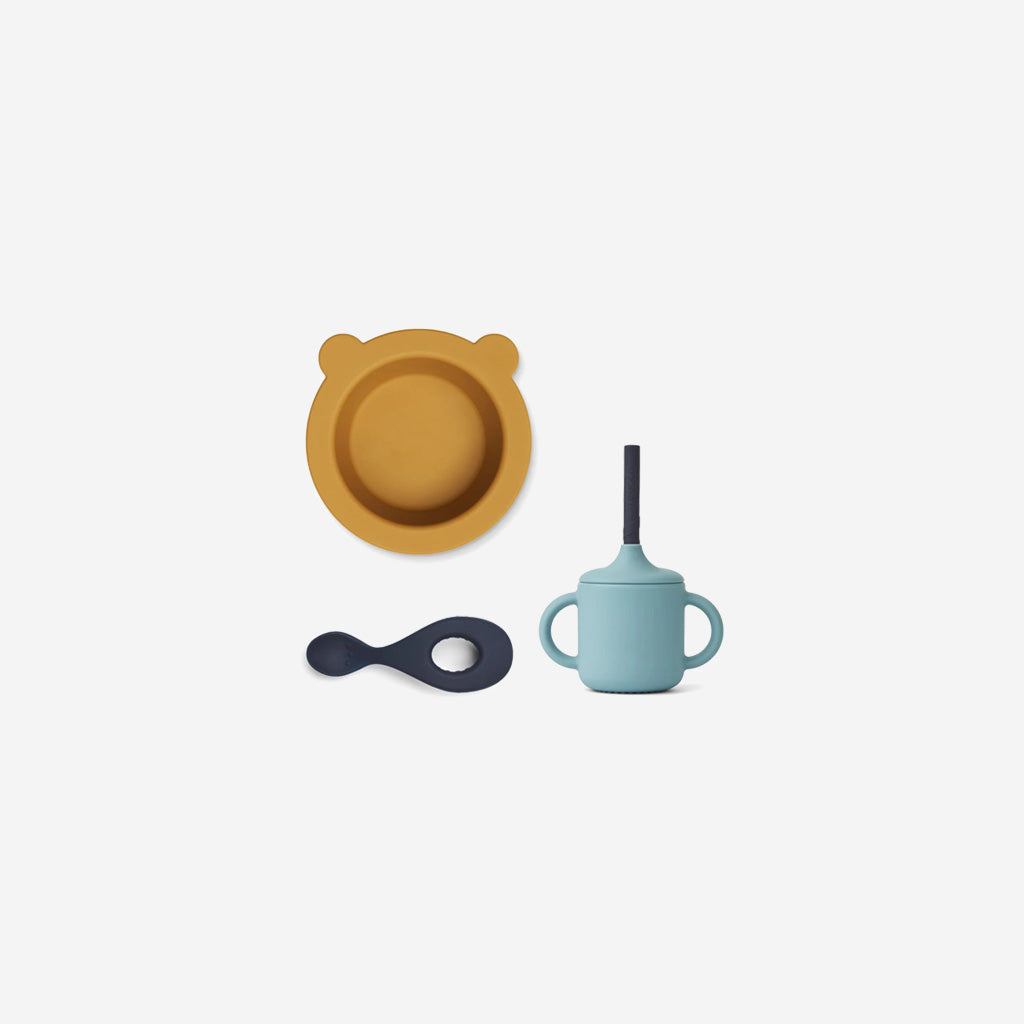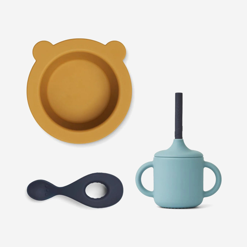The Liewood Kali Bowl set in Blue mix, includes everything your baby needs at mealtime. With a bowl, cup and spoon, it is perfect for breakfast, lunch and dinner.