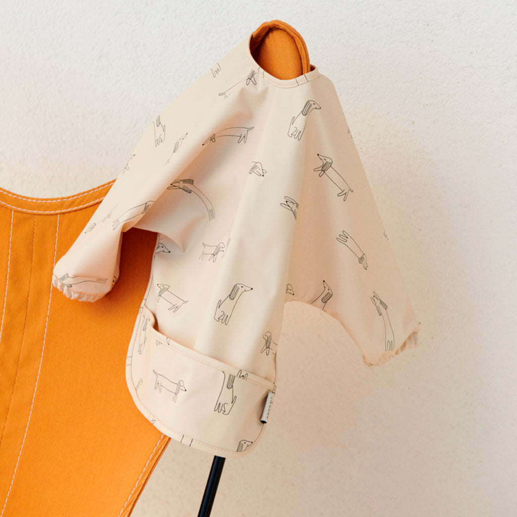 A lightweight and waterproof cape bib for children to protect from mess. The recycled material makes it instantly re-usable: simply rinse and wipe clean.