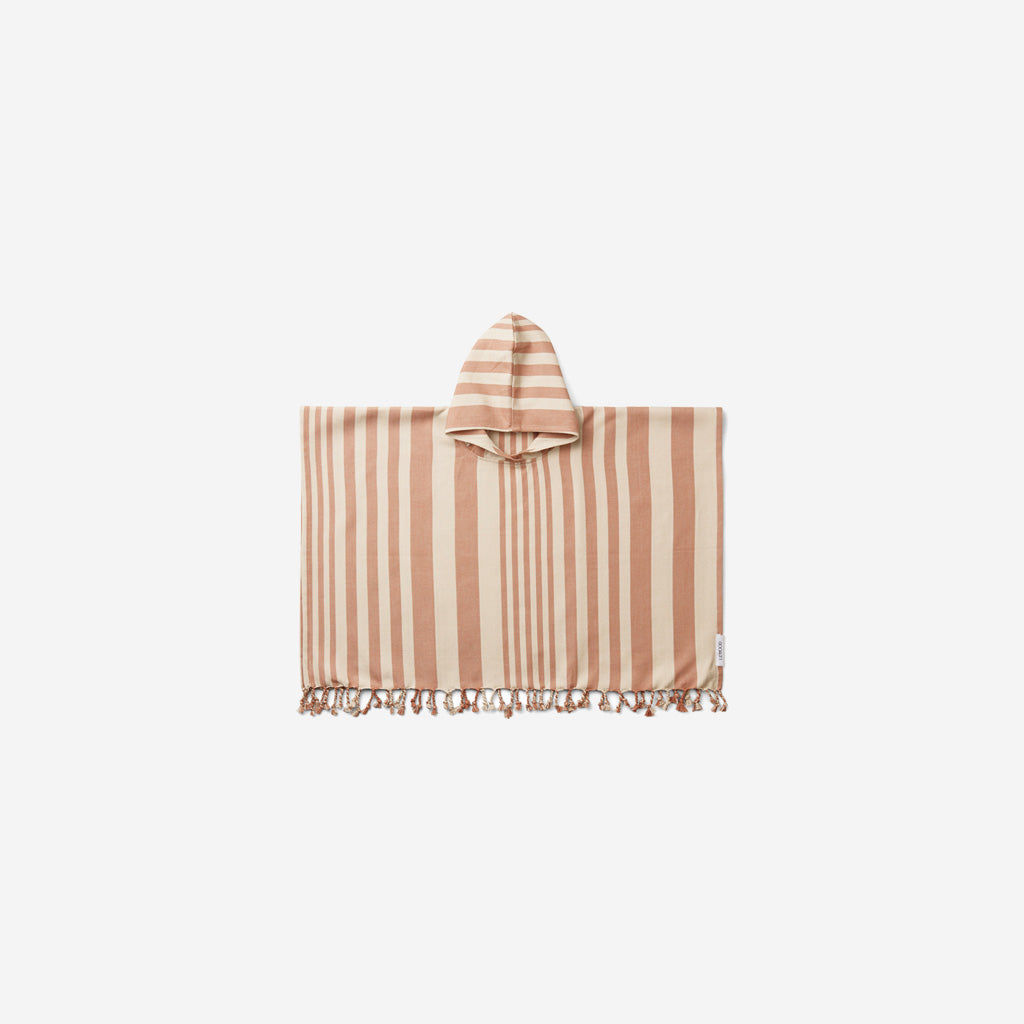 The Liewood hooded poncho in tuscan rose sandy, gives your children a real feeling of endless summer - ideal for holidays and days spent at the beach, either after a swim for to protect from wind or sun.