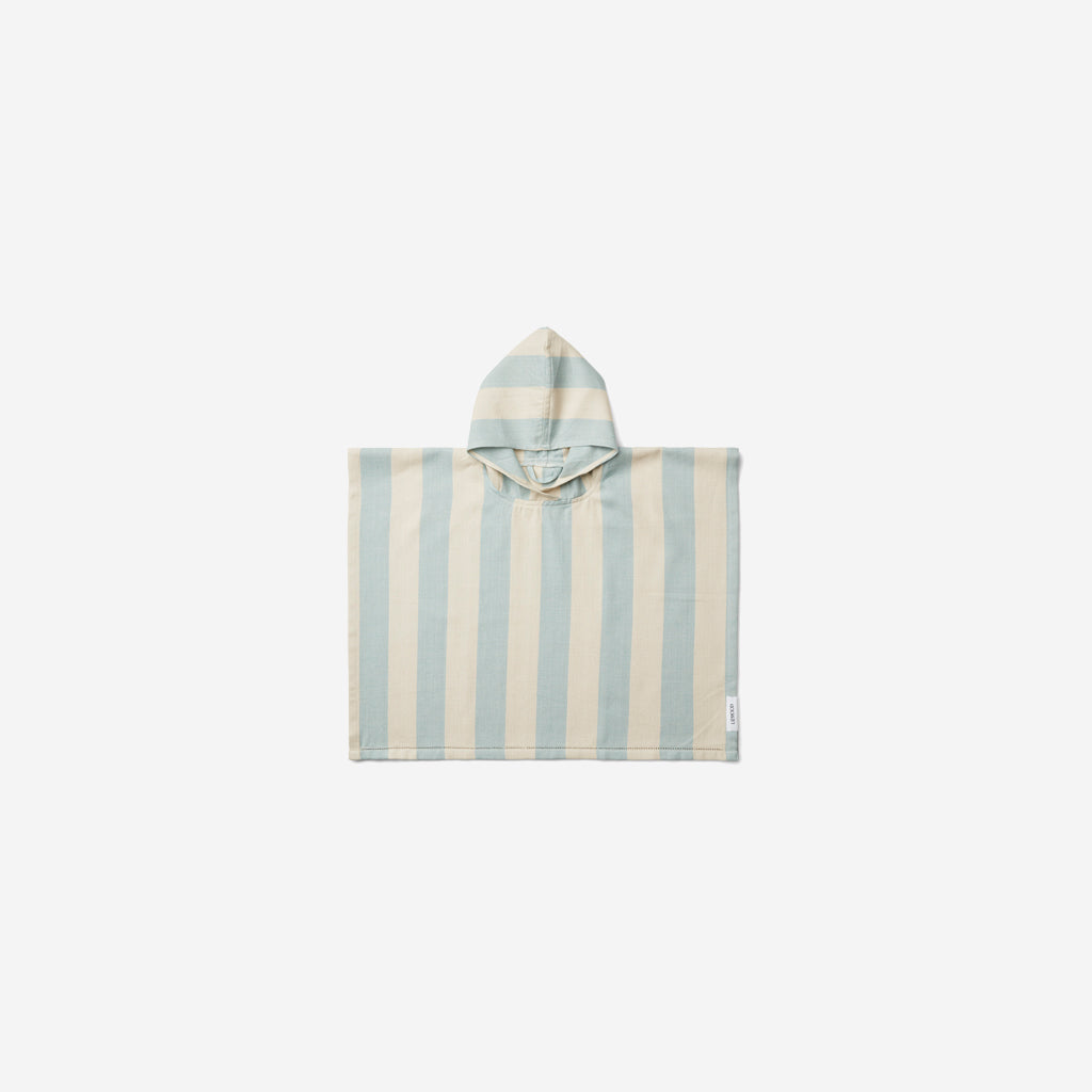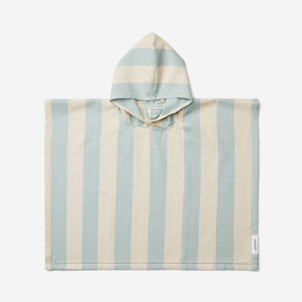 The Liewood hooded poncho in sea blue, gives your children a real feeling of endless summer - ideal for holidays and days spent at the beach, either after a swim for to protect from wind or sun.