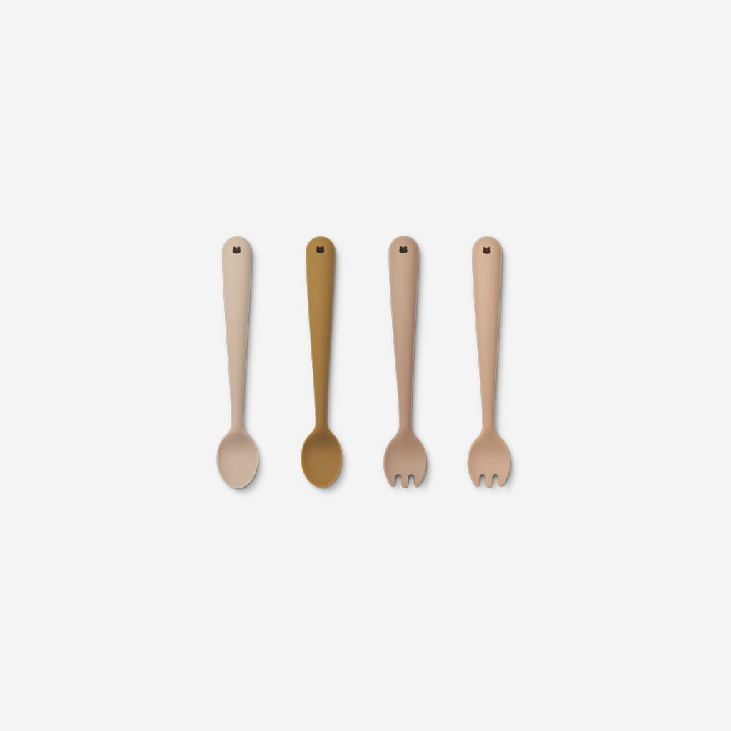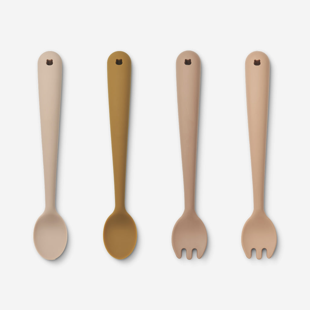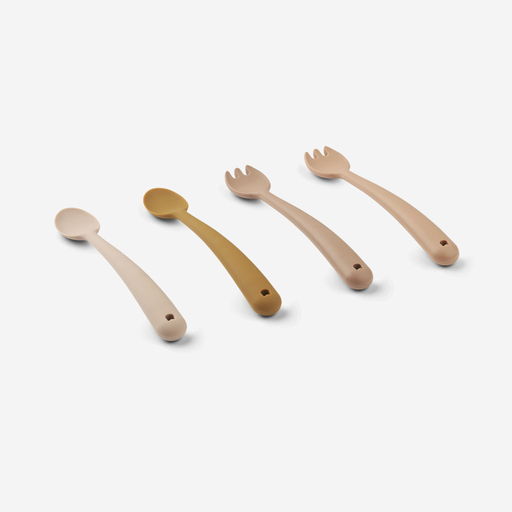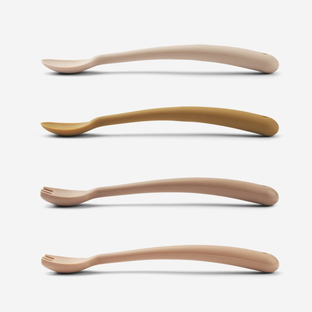 The transitional step of learning to eat solid foods isn’t always easy. The Shea Feeding Set with baby cutlery is an easy everyday feeding set made from soft silicone, safe for your child and noiseless when dropped. Useful for those not so easy everyday meals - and a tad softer on everyone’s ears and eyes. Set includes 2 Siv feeding spoons & 2 Scott feeding forks