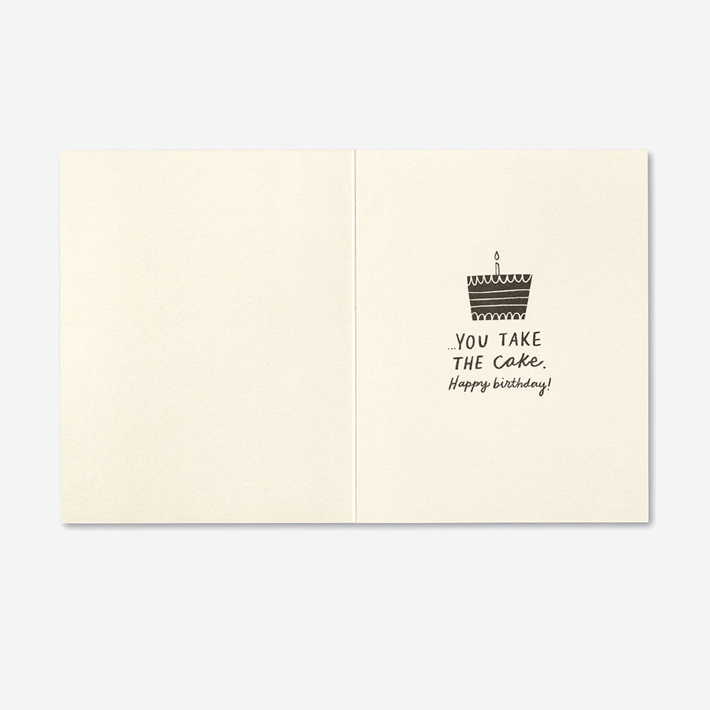 Inside: … you take the cake. Happy birthday! Illustrated by Emily Carlson.
