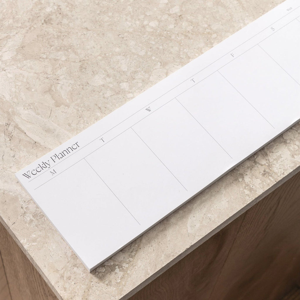 The Weekly Desk Strip is perfect for above the keyboard where you can quickly write down notes, thoughts, ideas or just for making quick lists for the week ahead. Simple and practical in style, it is perfect for the modern minimalist who loves simple typeface and a lot of space to write.