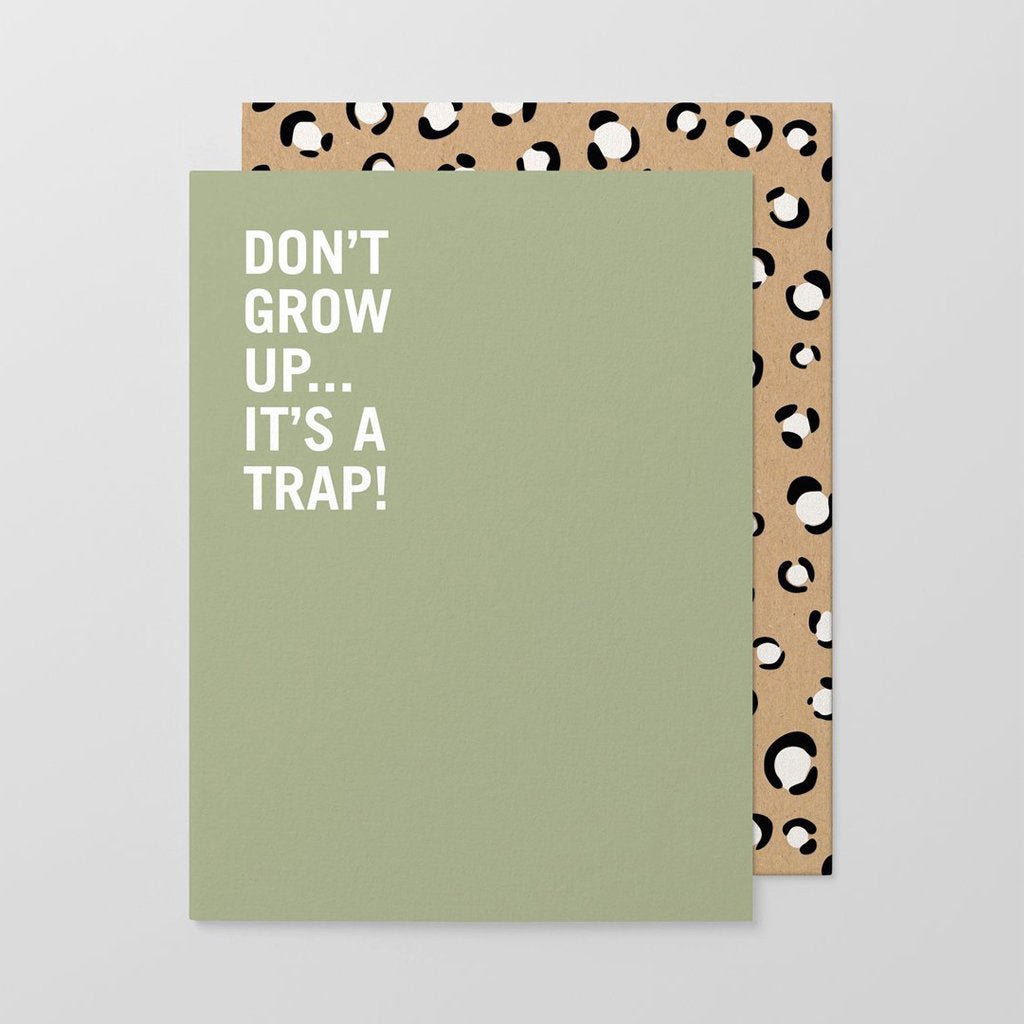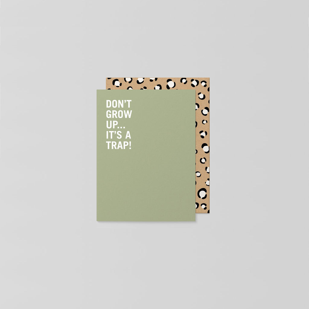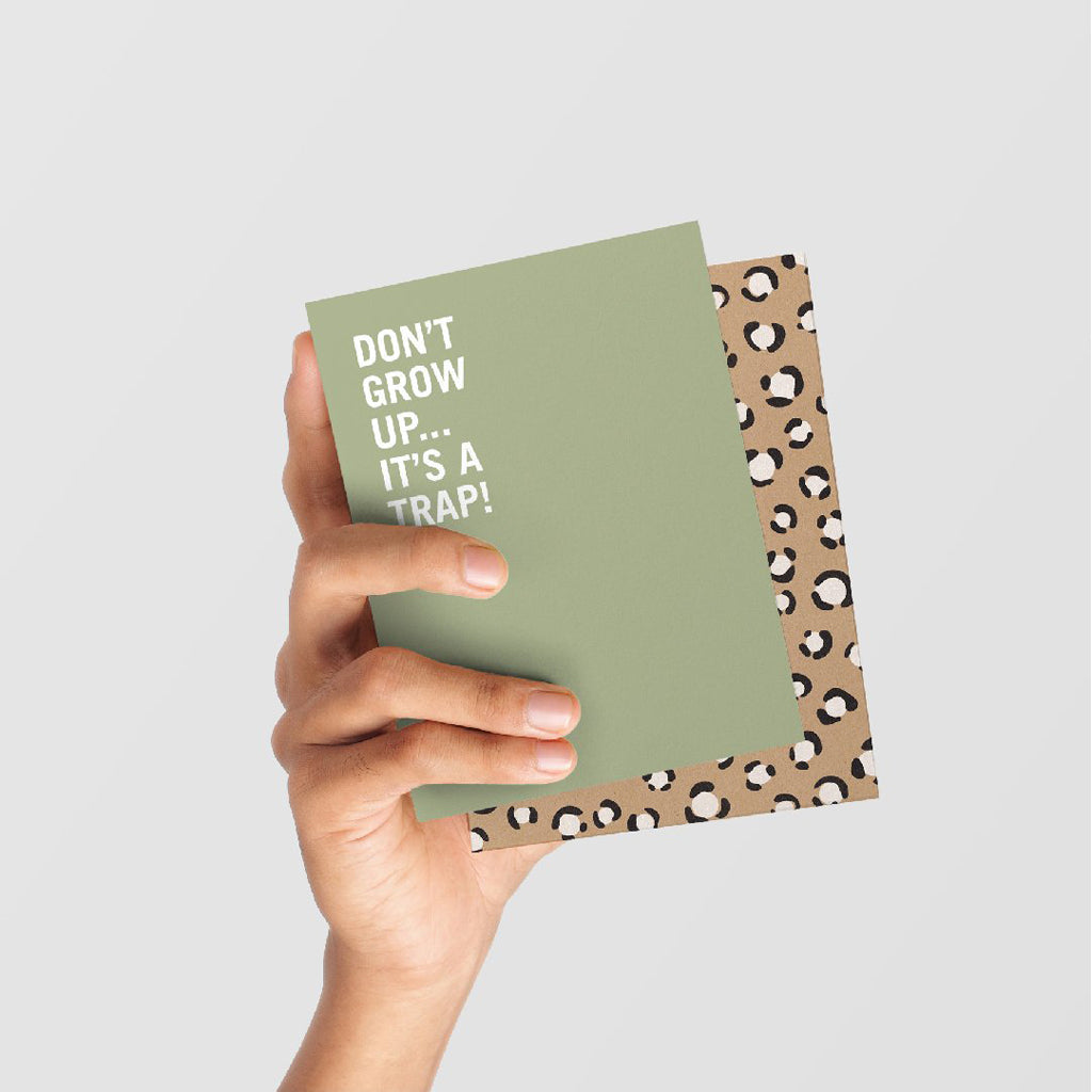For the young, the old and the Peter Pans, our Don't grow up! Embossed and black foil. Blank inside.