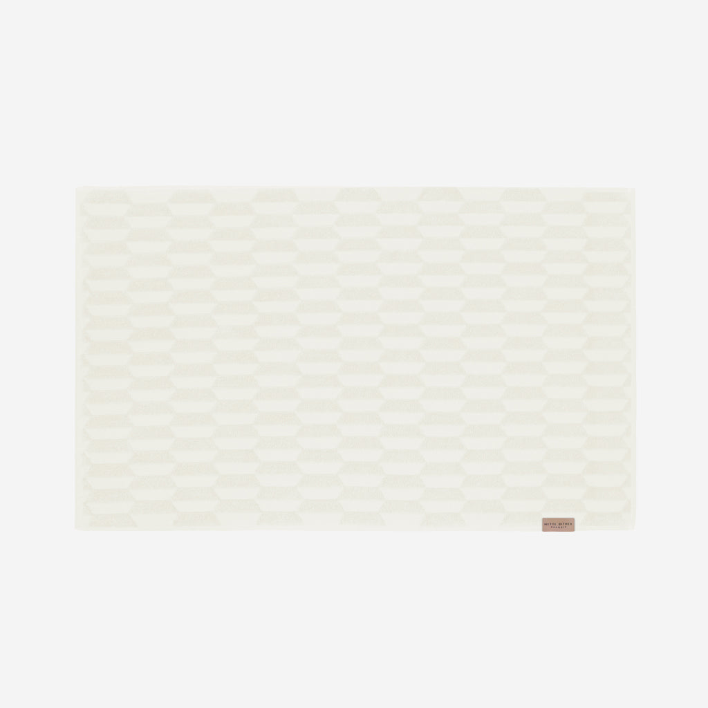 The Mette Ditmer Geo bath mats are made with a high-low weaving technique in which the hexagonal shape is split into two halves. It provides an almost three-dimensional, graphic pattern with a light and a dark half. The bath mat is made of 100% OEKO-TEX® 100 certified cotton, which gives a unique softness and good absorbency.